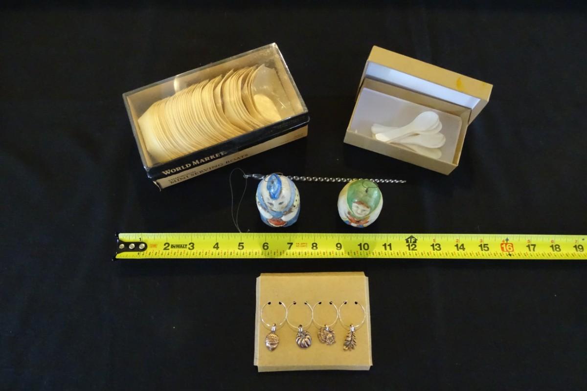 Vintage Salamander Pottery Bells (2), Serving Boats, Wine Charms