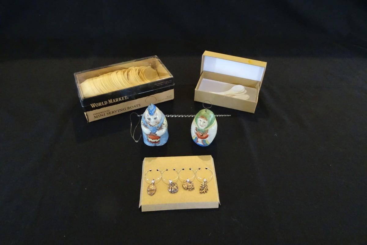 Unique Assortment of (2) Ornaments (x1 1985; Salamander) and Dinner Party Supplies