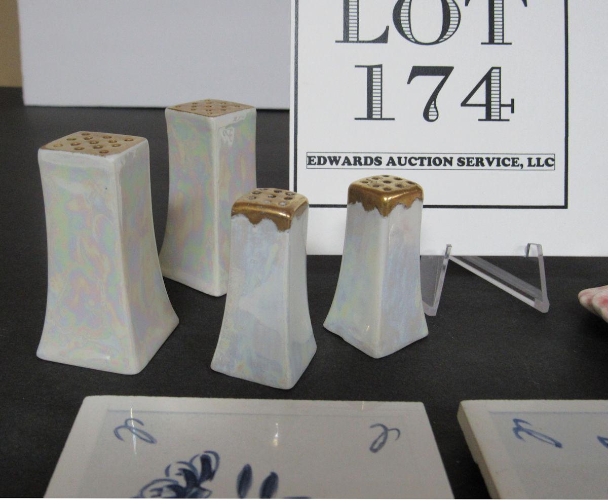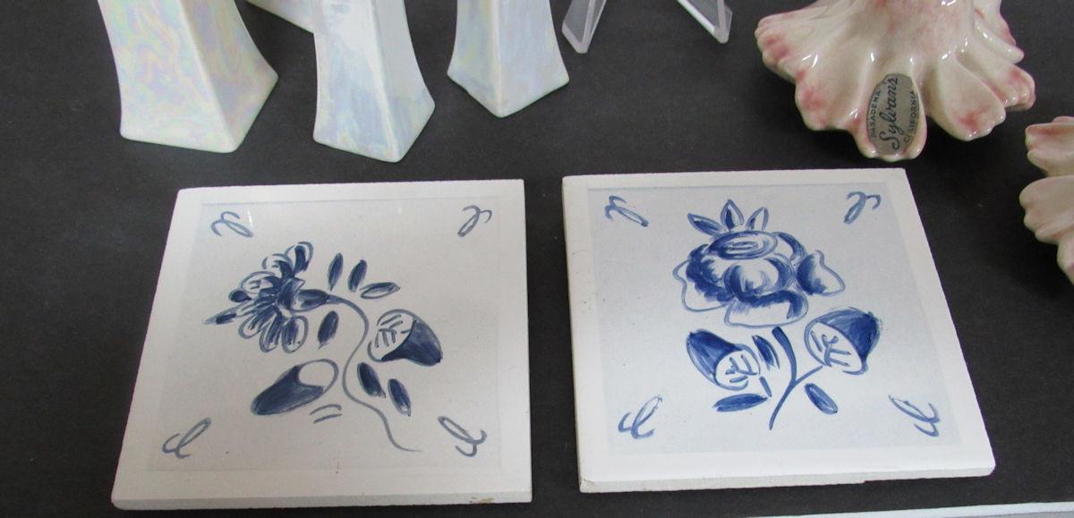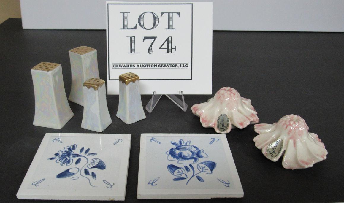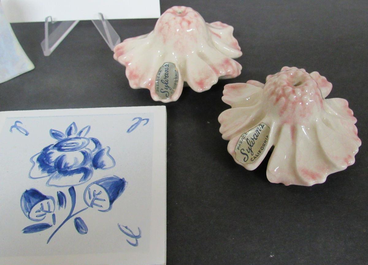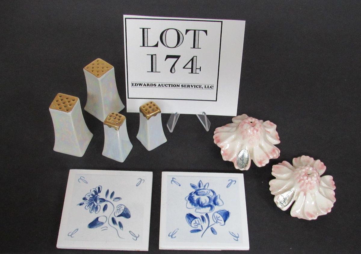 Vintage Salt and Pepers Lusterware, Sylvan of Cal Flowers, and Two Small Kitchen Tiles