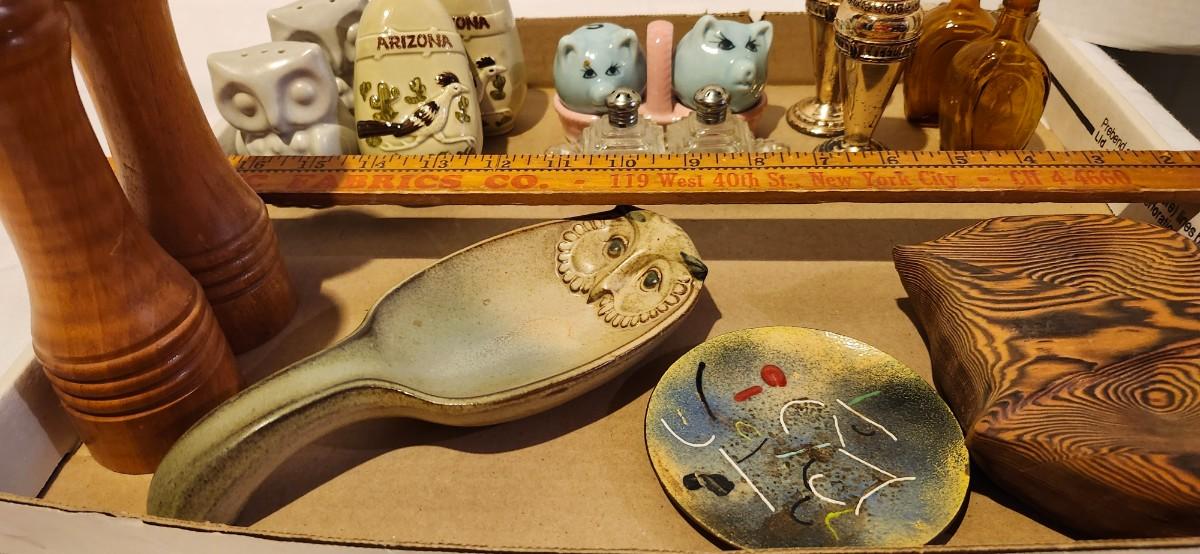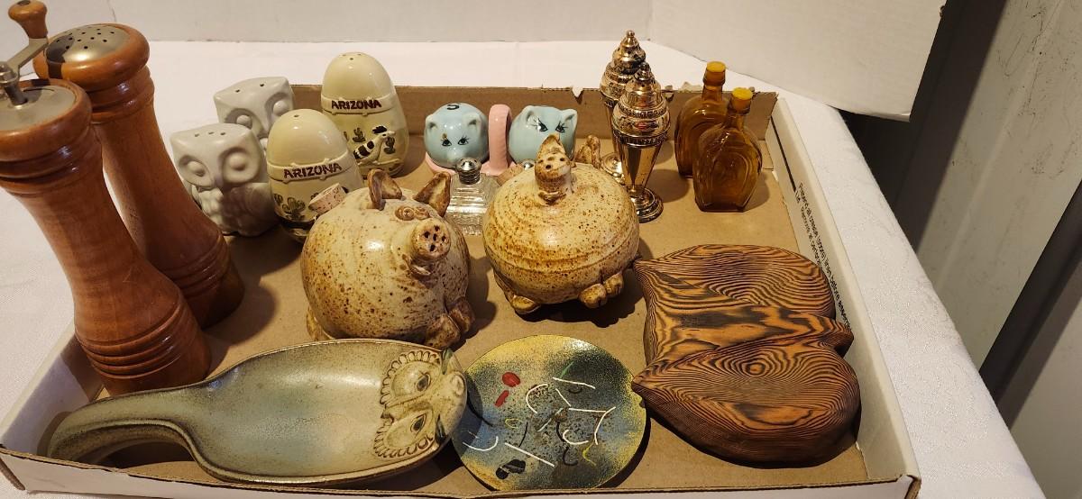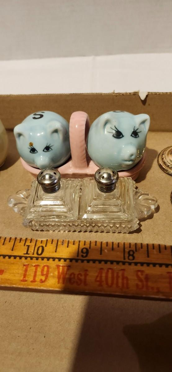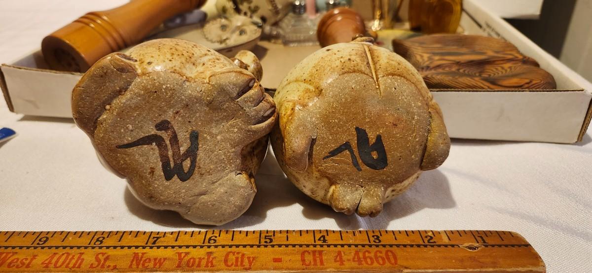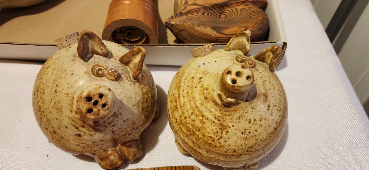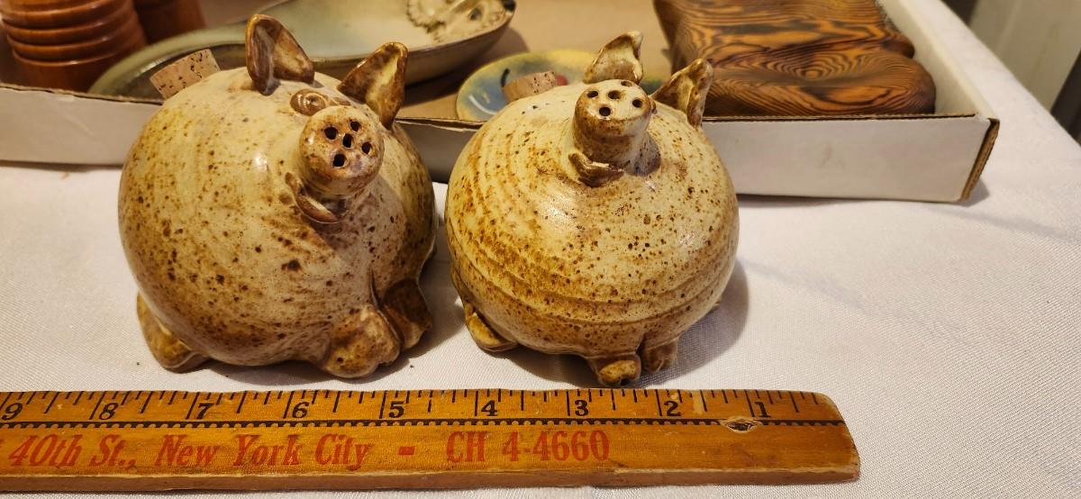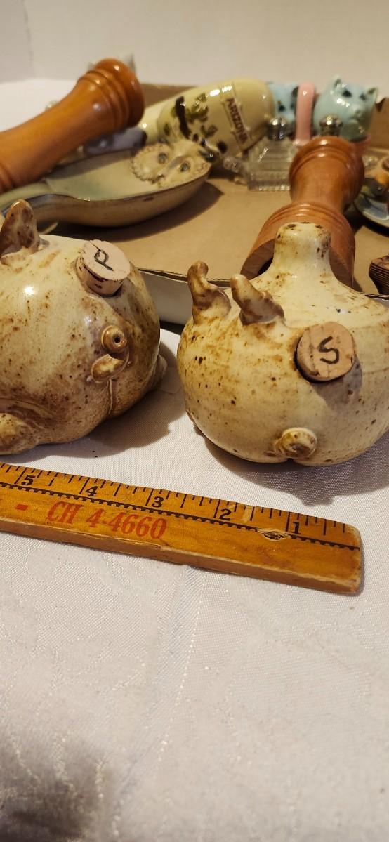 Signed Stoneware Pottery Piggy Slat and Pepper