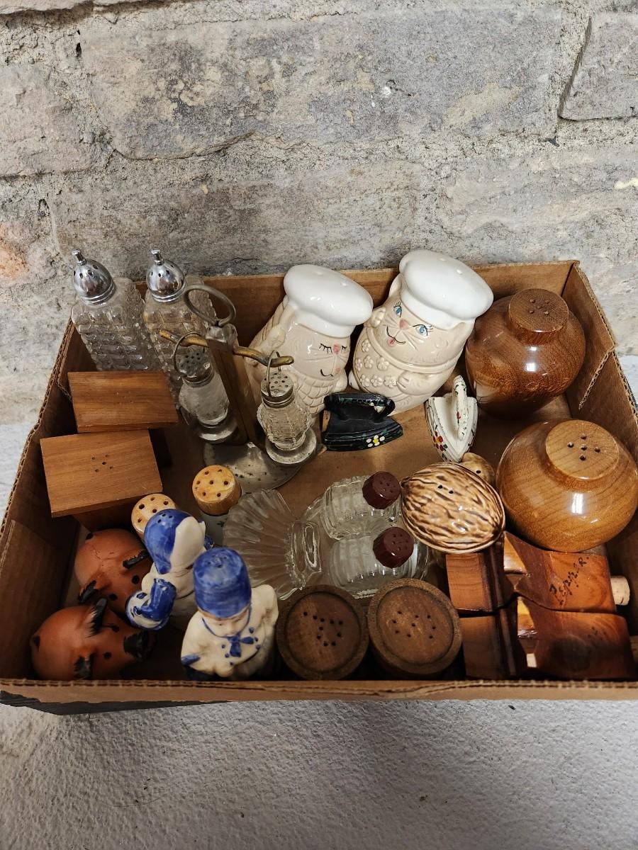 Lot of vintage salt and pepper shakers....the delft has a repair