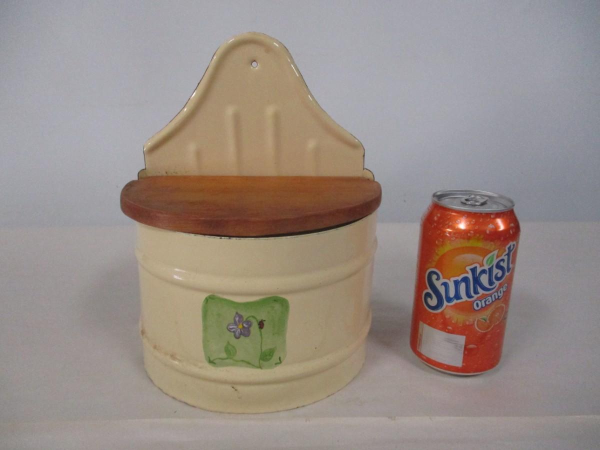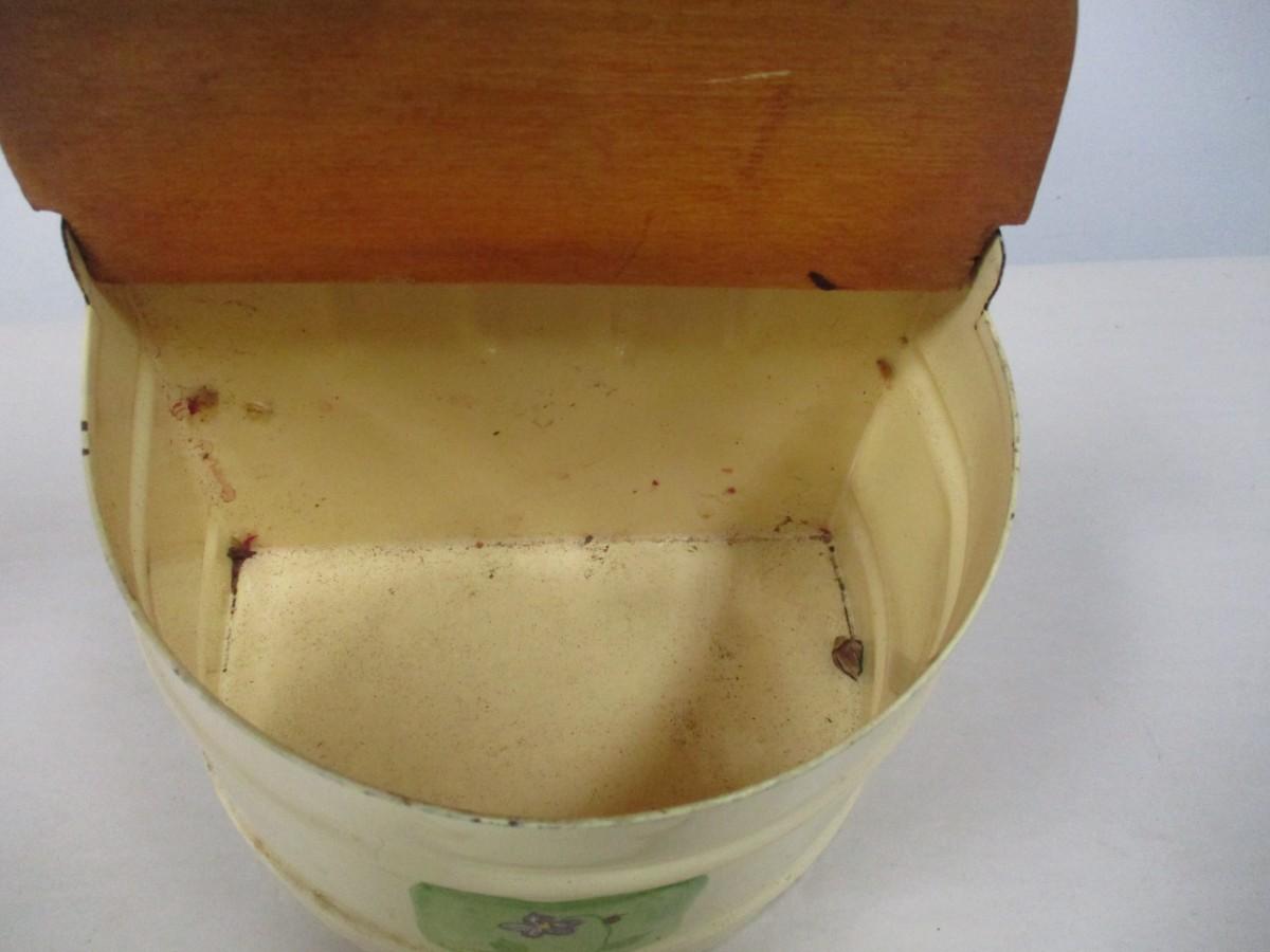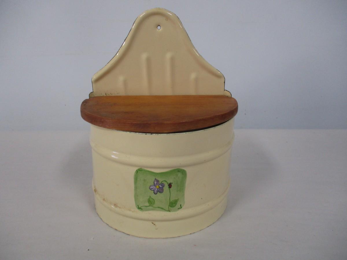 Vintage Salt Box With Wooden Lid