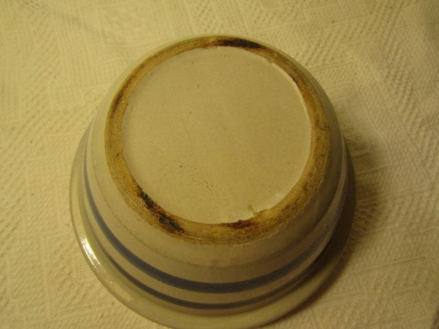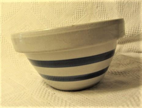 Vintage Salt Glaze Pottery Bowl with Blue Stripes