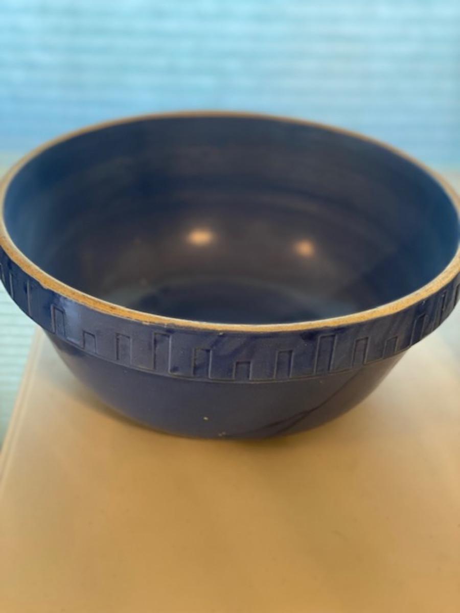 Vintage Salt Glazed Blue Bowl 13"