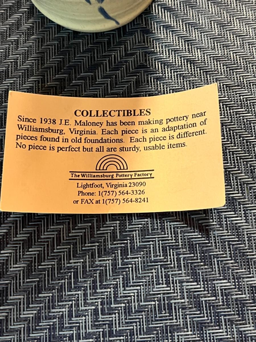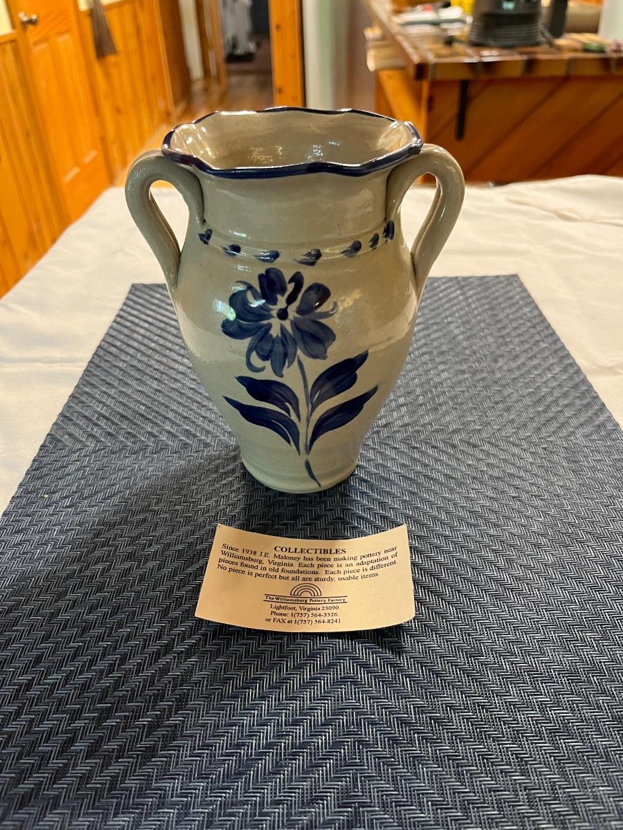Vintage salt glazed stoneware pitcher from Williamsburg Pottery
