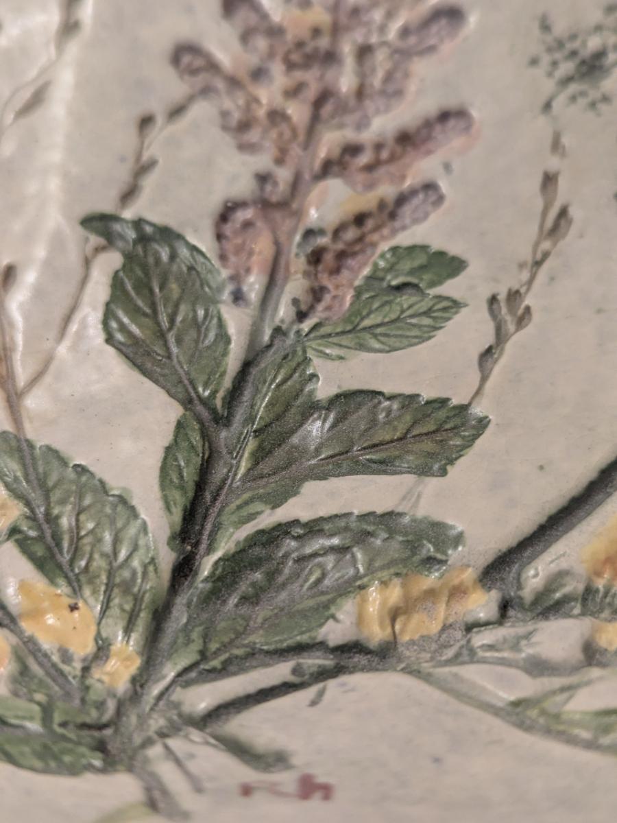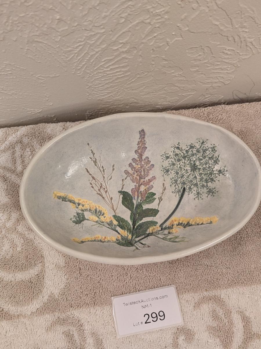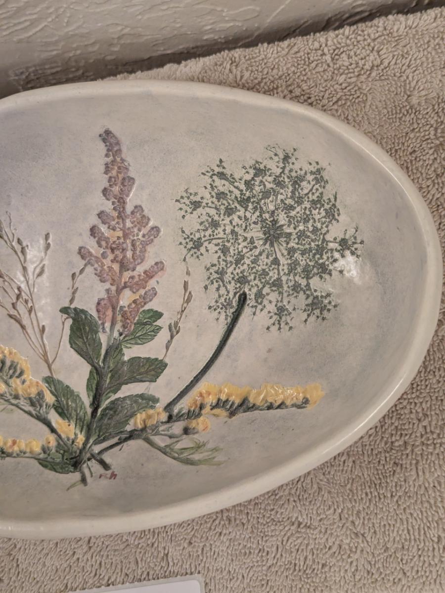 Vintage Salt Marsh Pottery oval bowl -Goldenrod Queen lace Steeplebrush