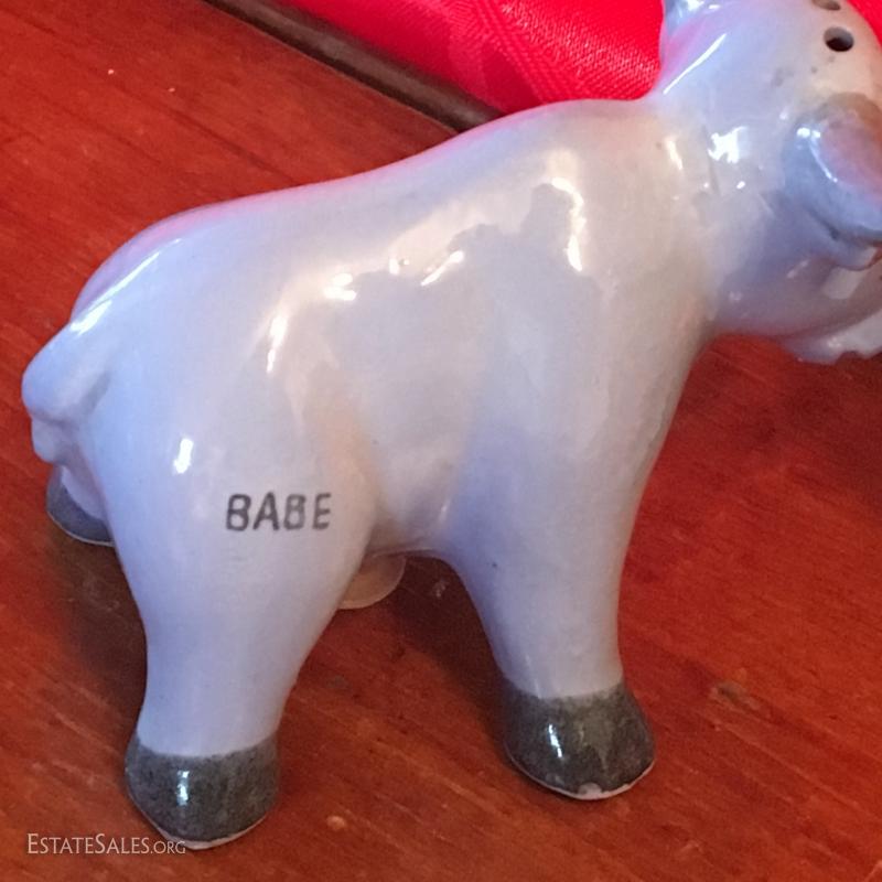 Salt & Peper Set. "Babe" word not worn. Some red on Paul is flaking.