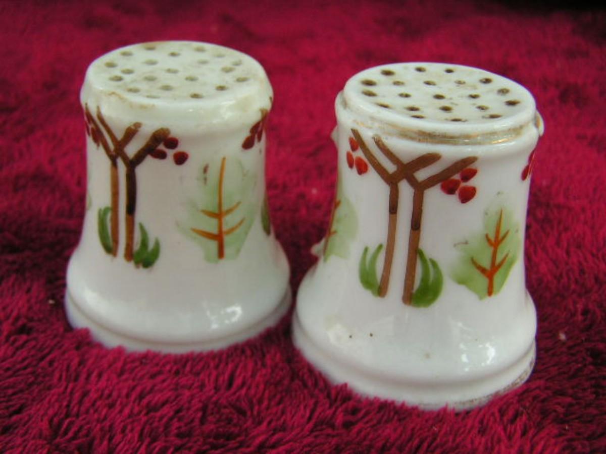 Vintage salt & pepper shaker set. Ceramic, hand painted.