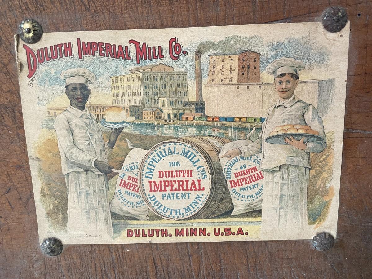 Vintage salt & pepper shakers + Duluth Imperial Mill Co. flour advertisement postcard