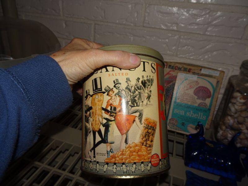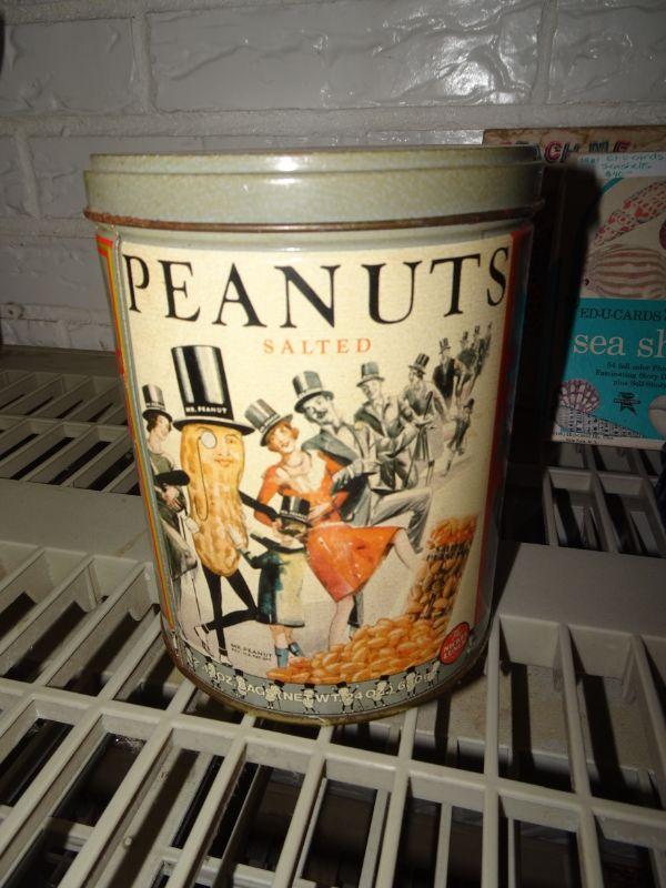 Vintage Salted Peanuts Tin Can, Lithograph Tin Can