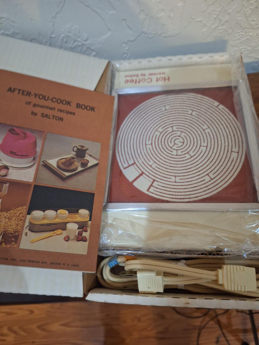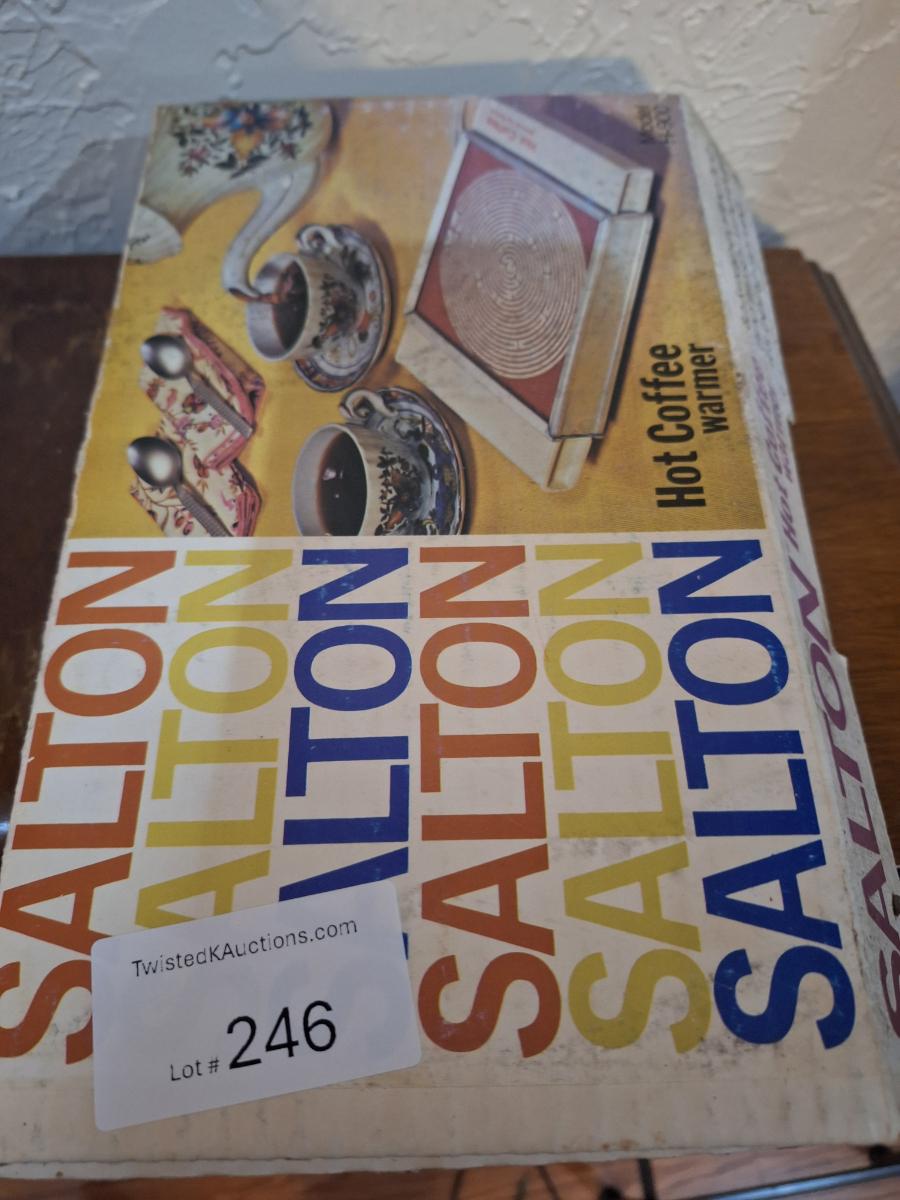 vintage salton hotray automic food warmer set, in original box, looks to be new condition old item.
