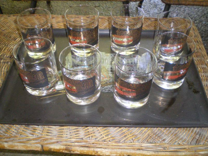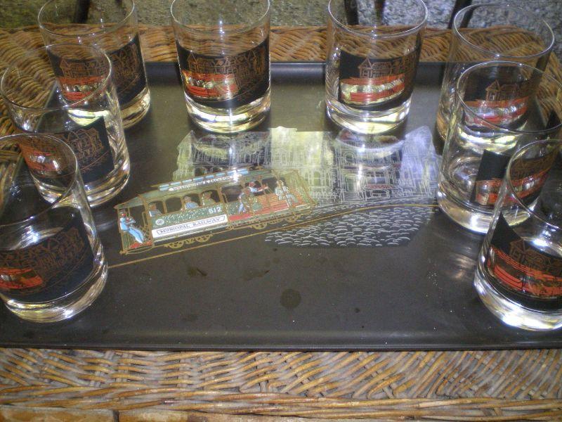 Vintage San Francisco  Cable Car Glasses and Courac Tray