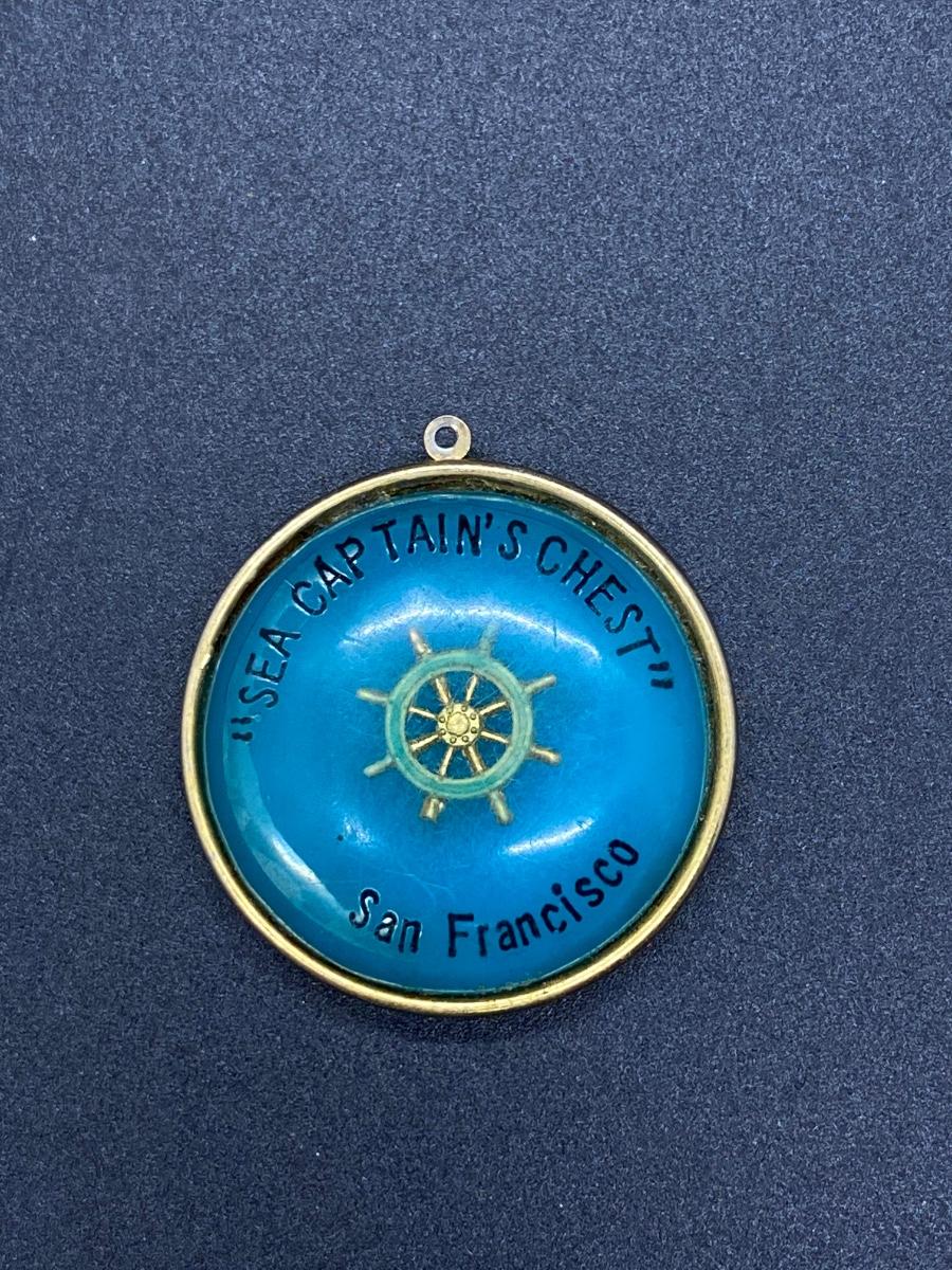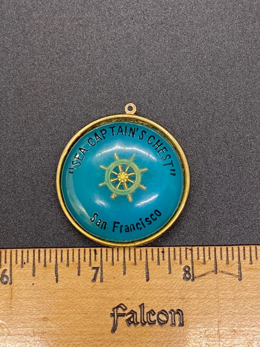 Vintage medallion souvenir charm from the Sea Captain's Chest San Francisco. Light wear from age. About 1.5" size.