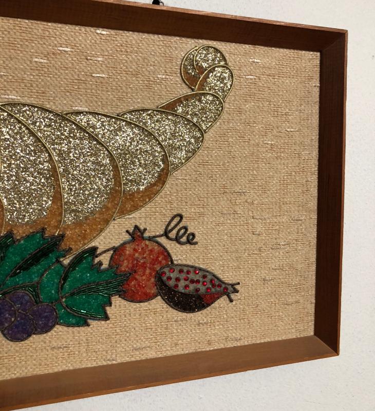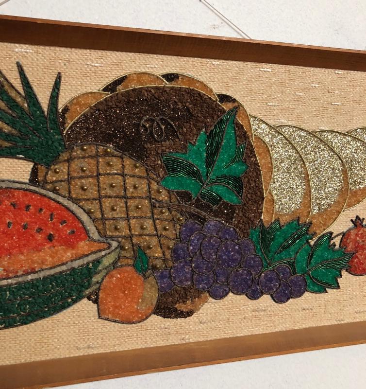 Here is a Horn of Plenty mural done with old sand art technique..circa 1950's-60's...