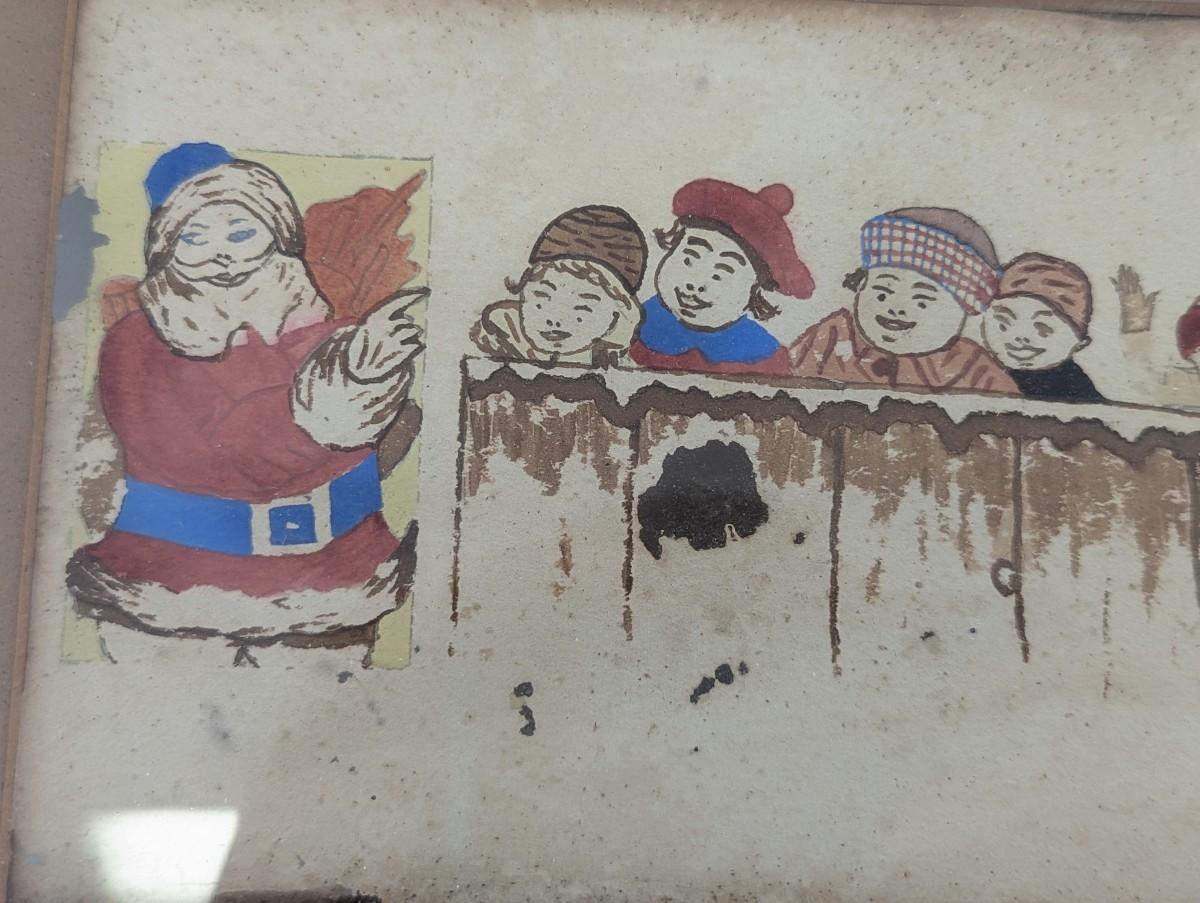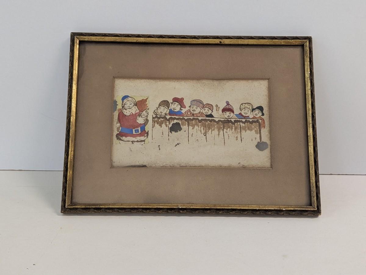 Vintage Santa & Children Art Approx 13" x 9 3/4"