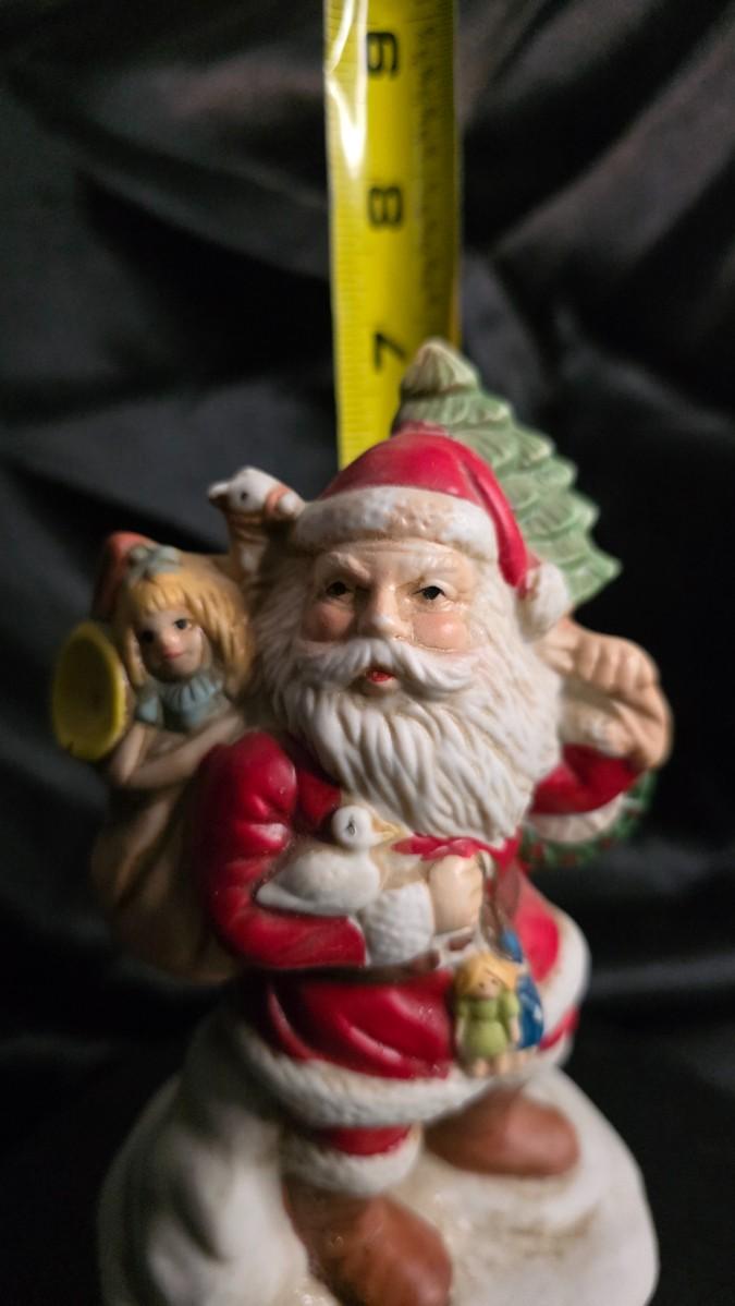 The sculpt shows wonderful dimensional layering, from the folds in Santa’s suit to the playful tilt of the Christmas tree tucked behind him. It carries that traditional holiday spirit that feels timeless, making it perfect for a mantel, vintage-inspired display, or seasonal décor collection. Substantial in presence, visually rich, and full of warmth, it’s a festive accent that immediately brings joy and classic holiday storytelling into any room.