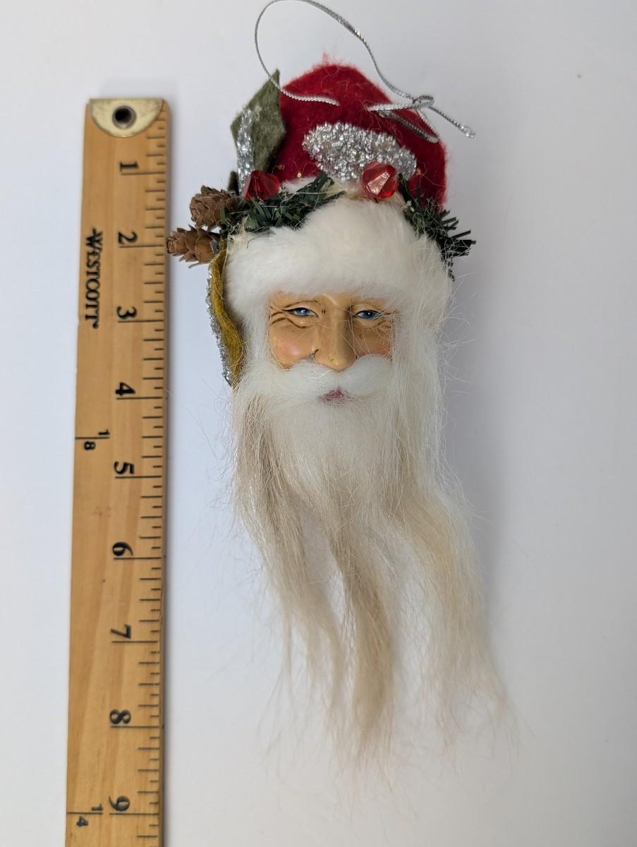 Vintage Santa Claus Face Ornament With Long Beard Holiday Decoration