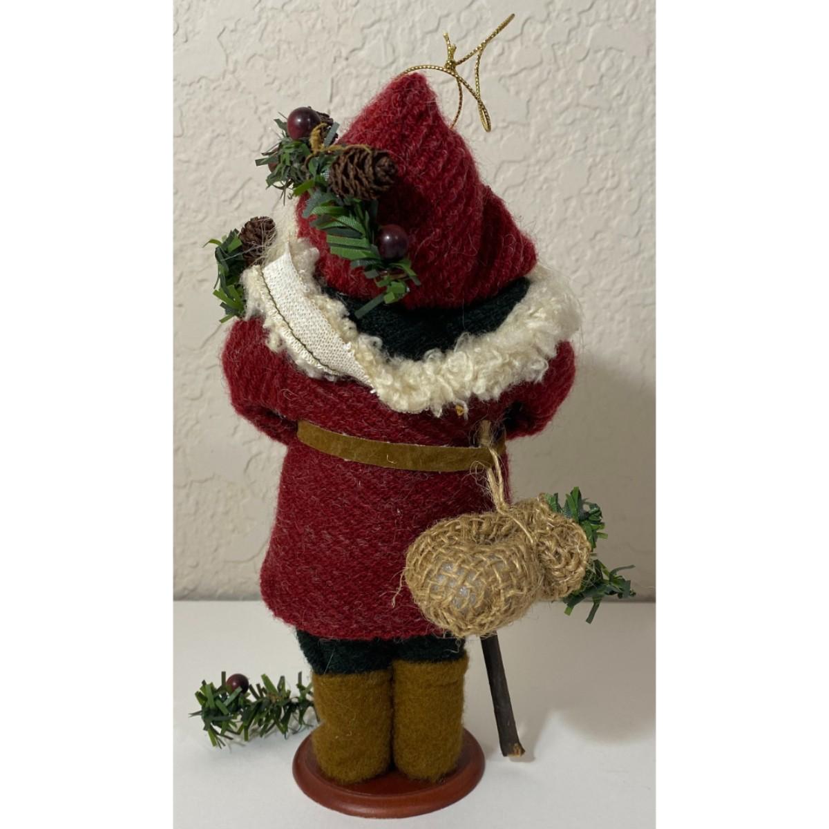 Vintage Santa Claus Ornament Walking Stick Pine Cone Evergreen Bough