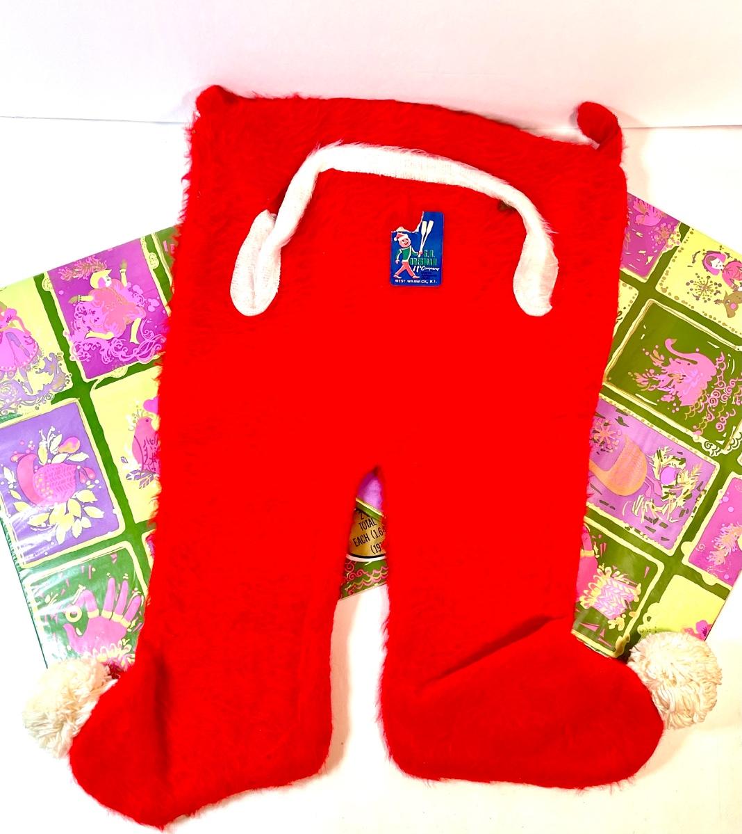 How cute are these?! I can envision these in a fabulous vintage Christmas area! Vintage Christmas lovers need these sweet Santa pants. I think you could even use as a stocking and get twice as much! Some cute vintage wrapping paper to boot. Approx 15”.