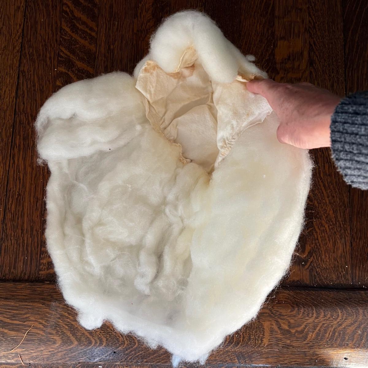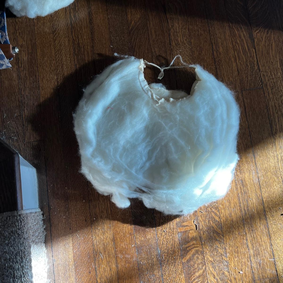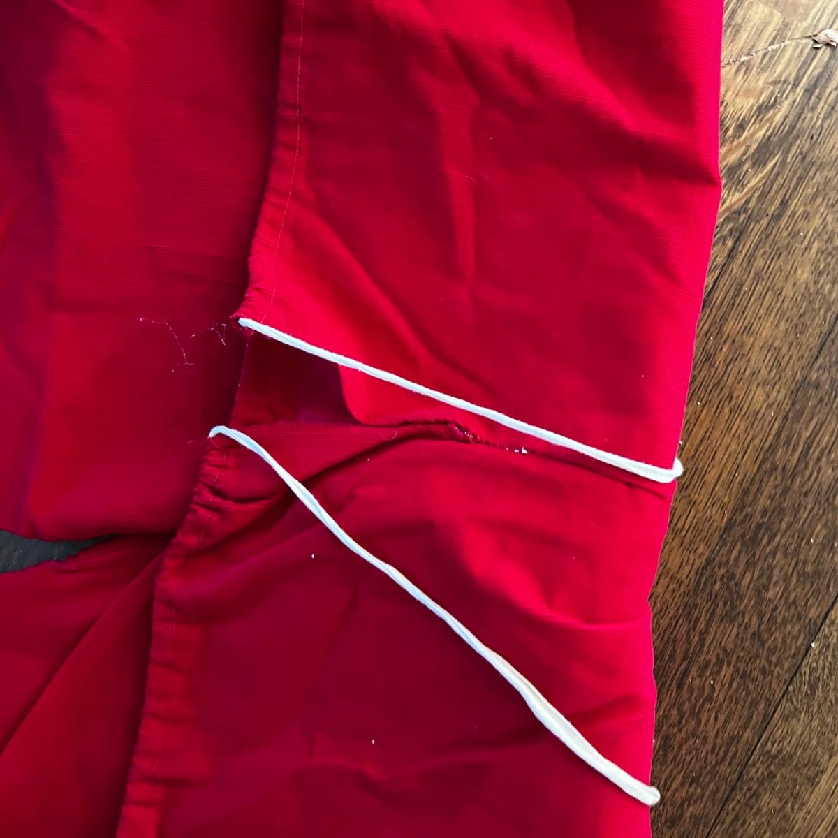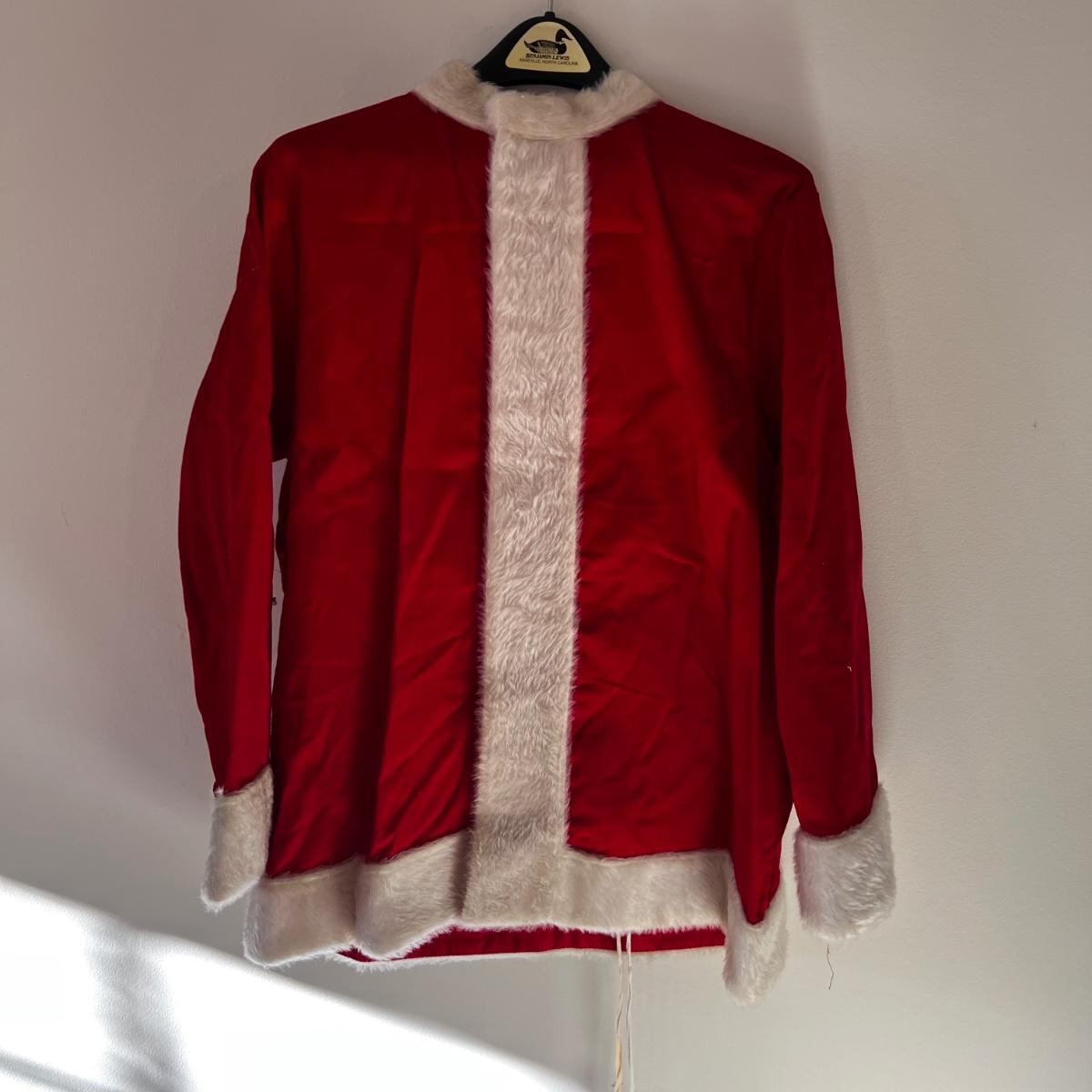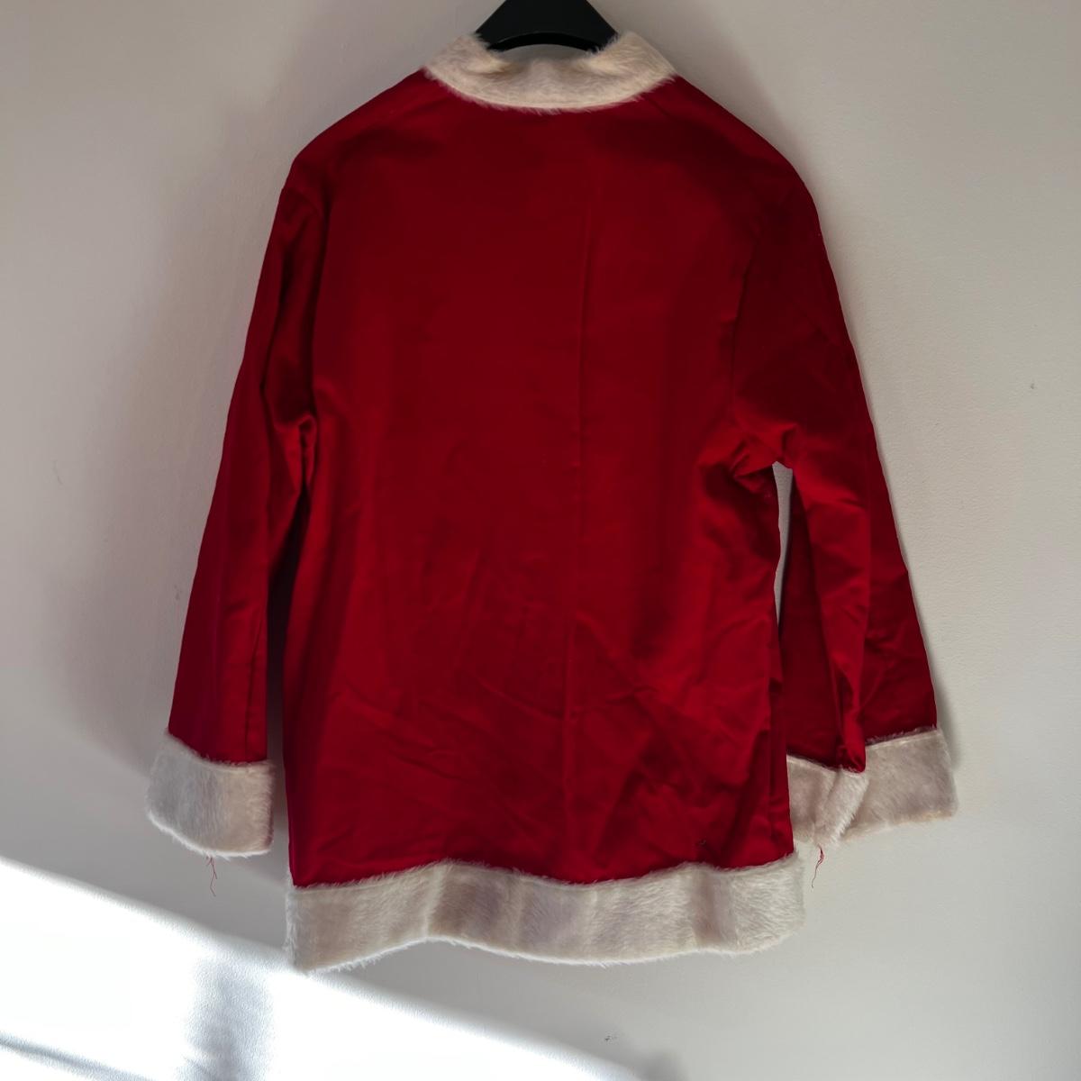 This wonderful Santa suit comes complete with beard, hair, belt and boots. The red Santa hat is newer looking. Jacket measures 22” chest x 29” long. Pants are drawstring.