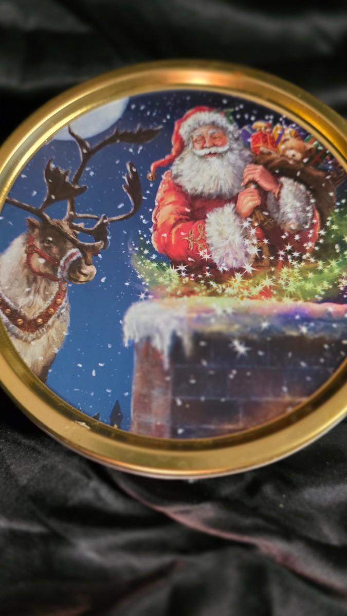 A beloved piece of seasonal décor, this tin brings instant wonder to kitchen counters, holiday displays, or gift tables—ready to stack with other celestial classics or shine alone as a reminder of the night the sky itself celebrates. For collectors of Santa tins, reindeer lovers, or anyone who still looks up on Christmas Eve hoping to catch a glimpse of red against the stars, it's a heartwarming treasure that turns every holiday into magic.