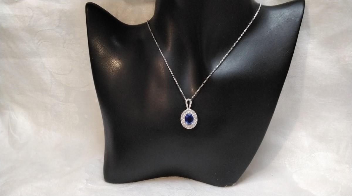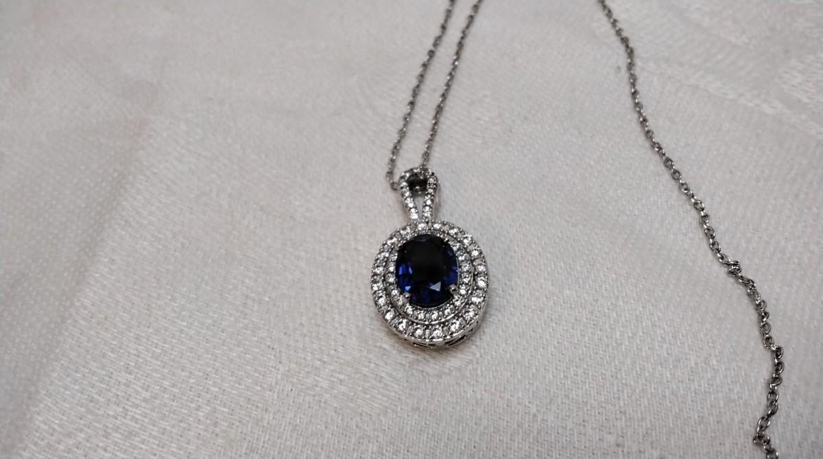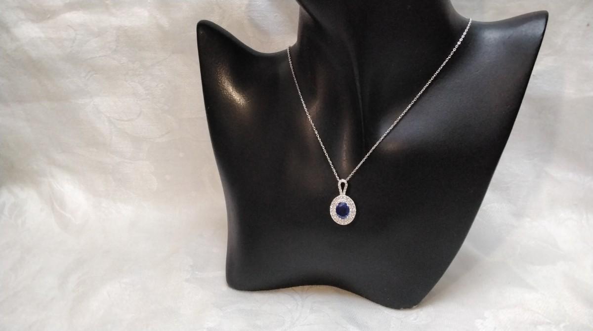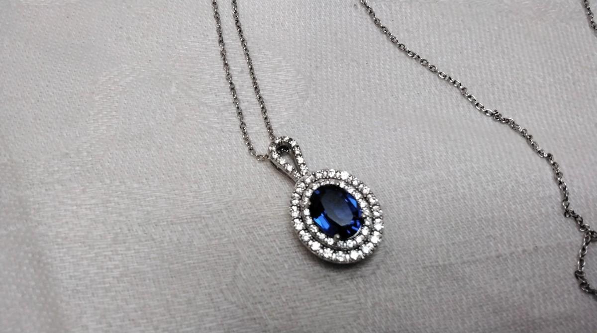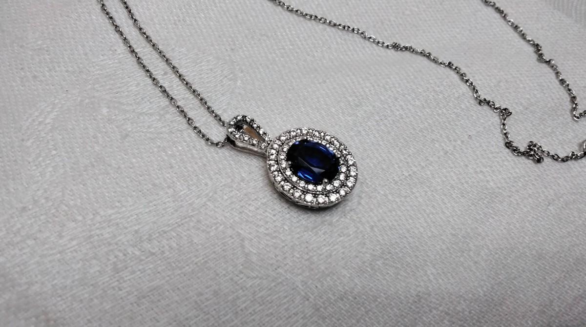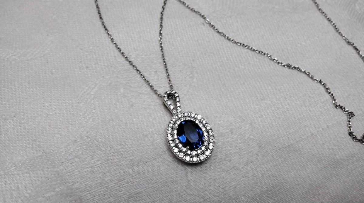 Vintage Sapphire and CZ 925 18" Necklace