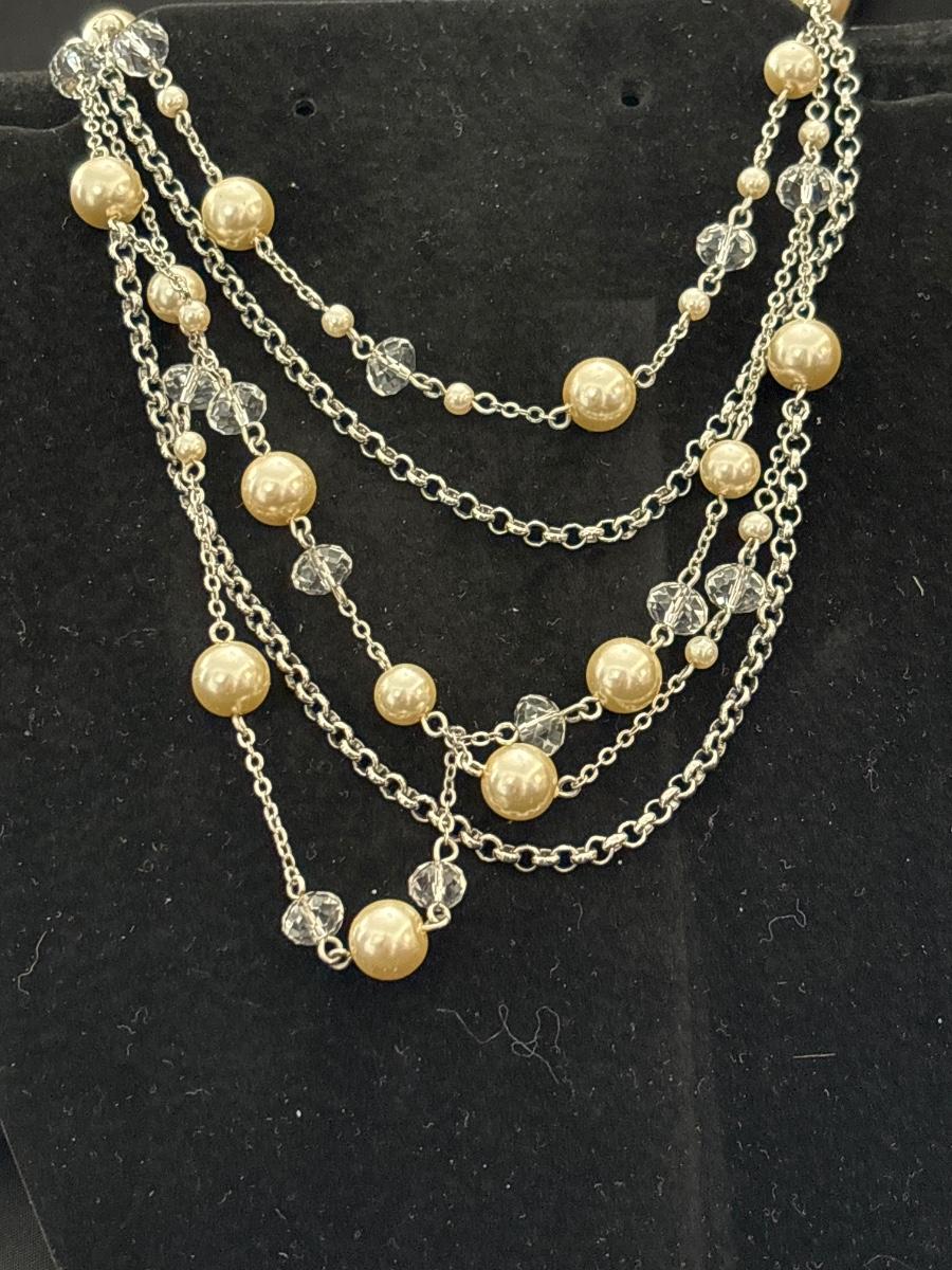 Vintage SAQ 4 Strand Bead Silver-tone Necklace