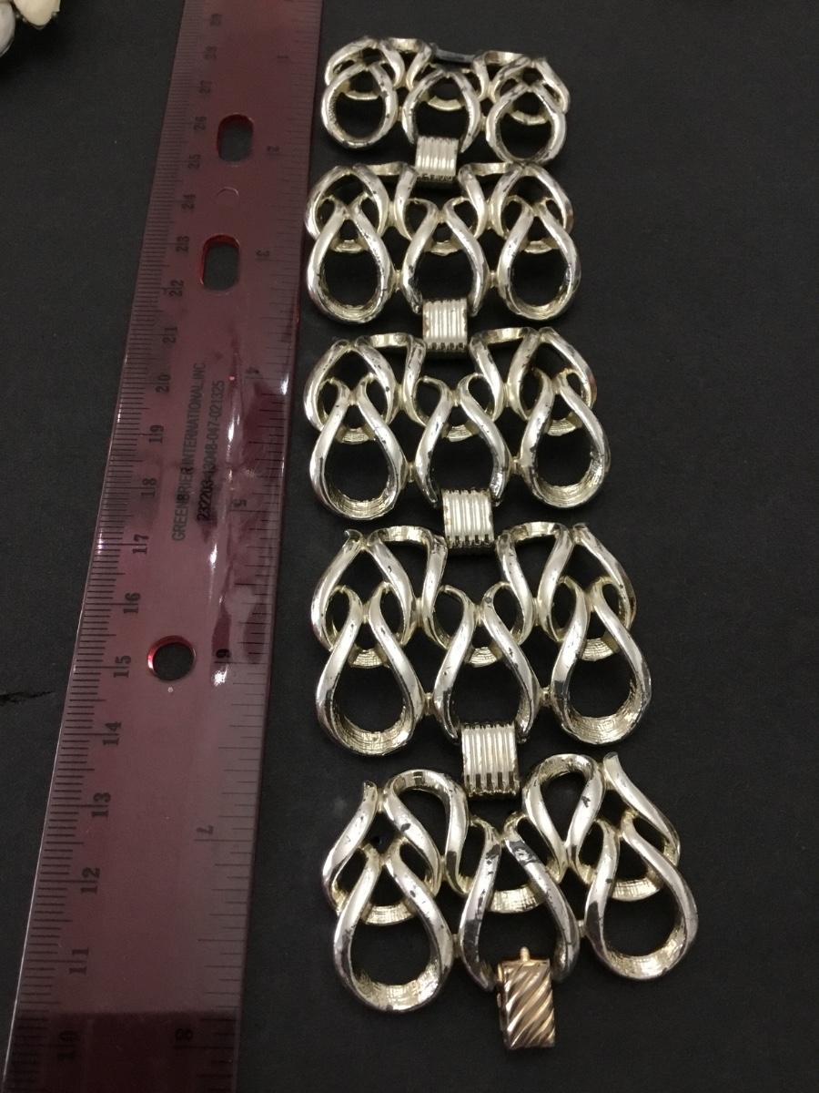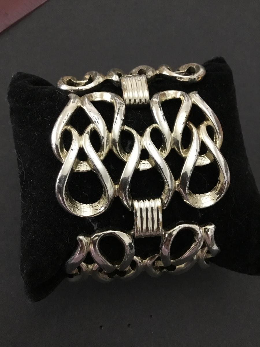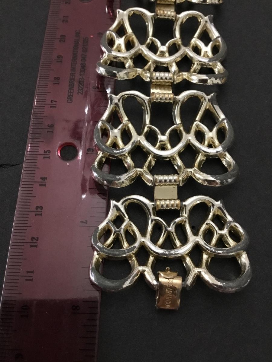 Vintage Sarah Coventry, gold toned, wide panel bracelet
