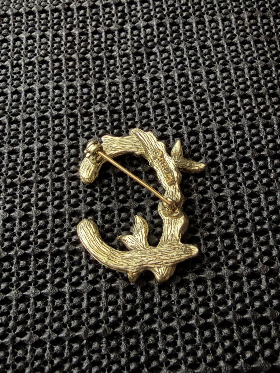 vintage Sarah Coventry gold-tone initial "C" brooch featuring a tree branch and leaf design.