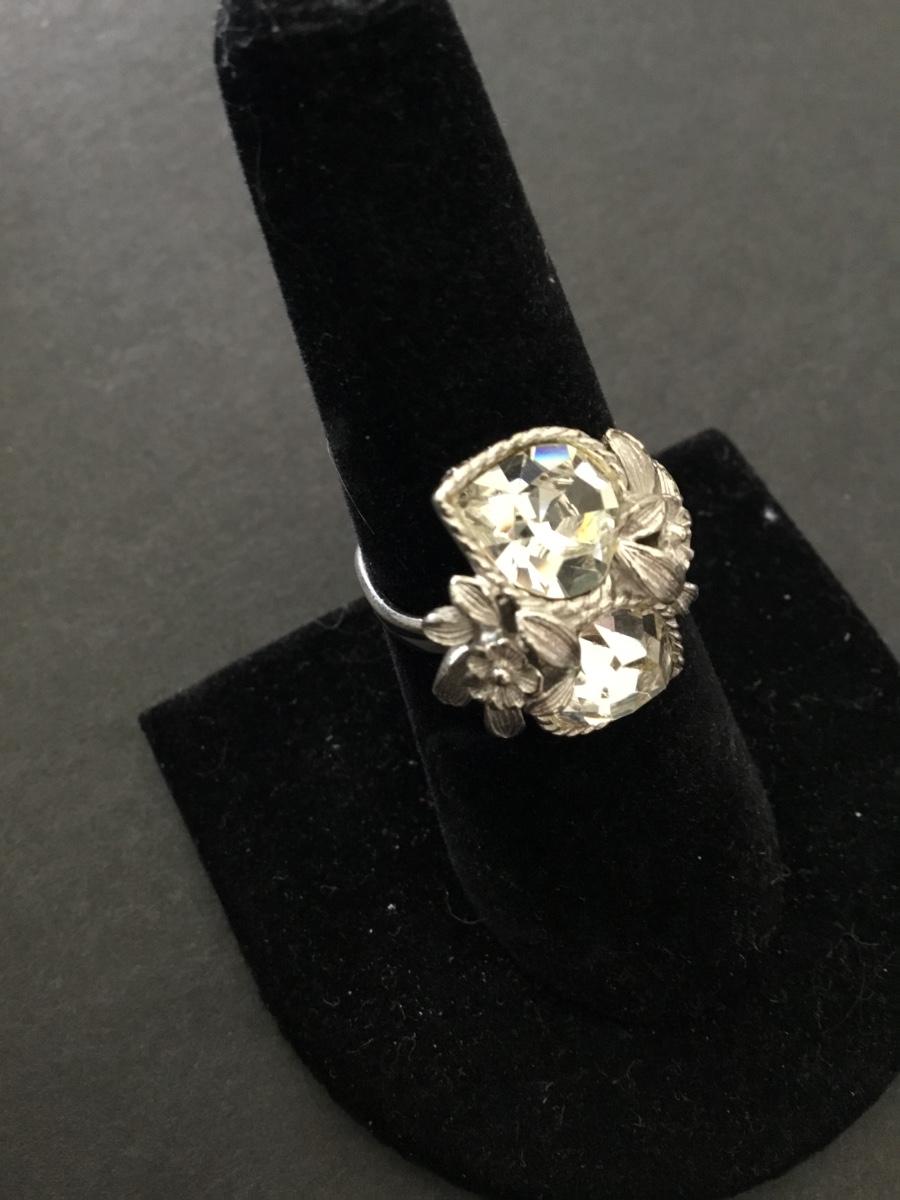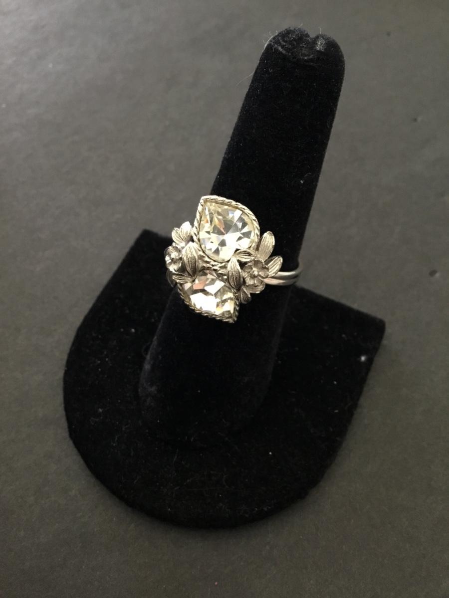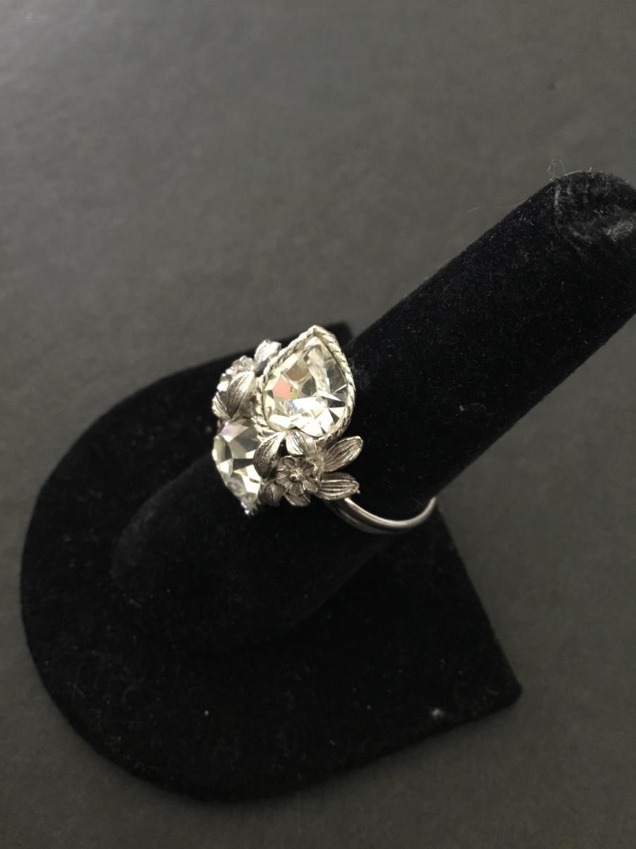 Vintage Sarah Coventry, heart crystal rhinestone ring