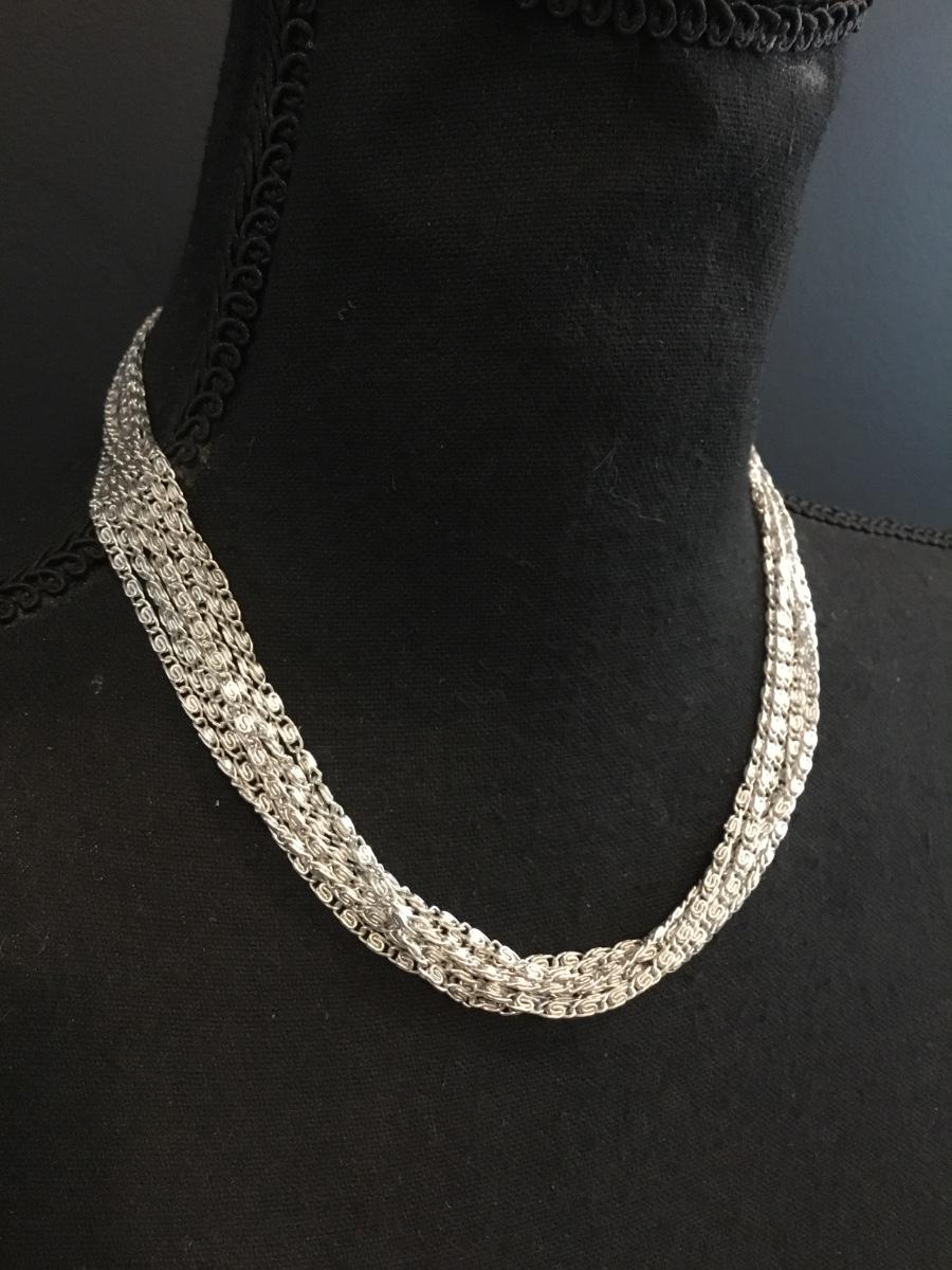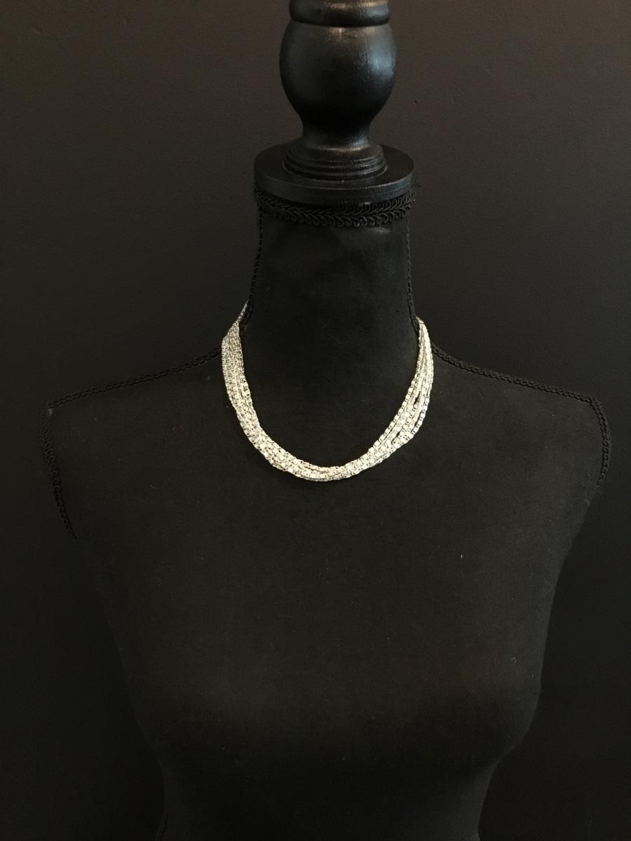 Vintage Sarah Coventry, multi strand, silver toned, pinwheel chain necklace