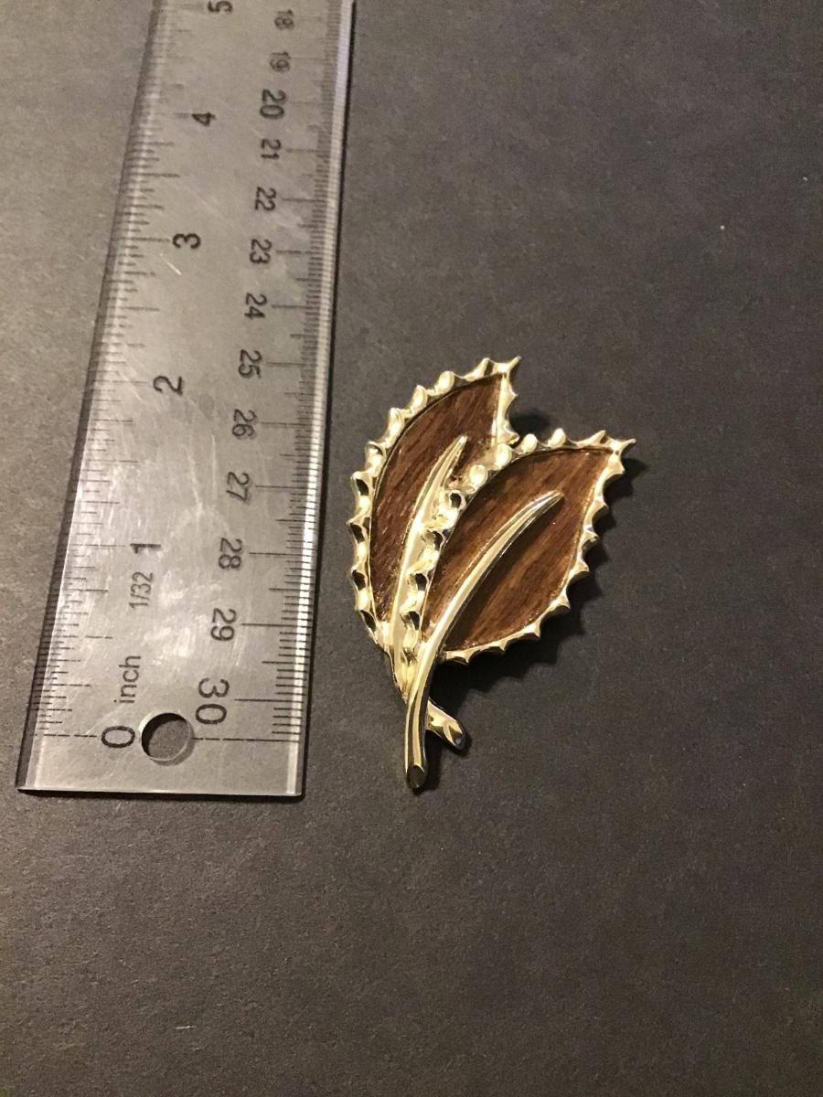 Vintage Sarah Coventry wooded beauty brooch gold tone with wood grain inserts