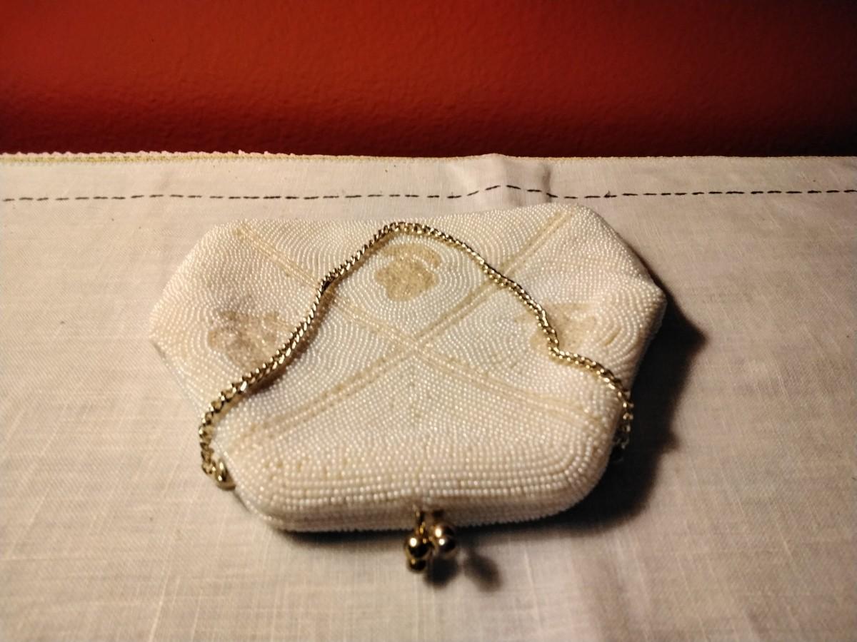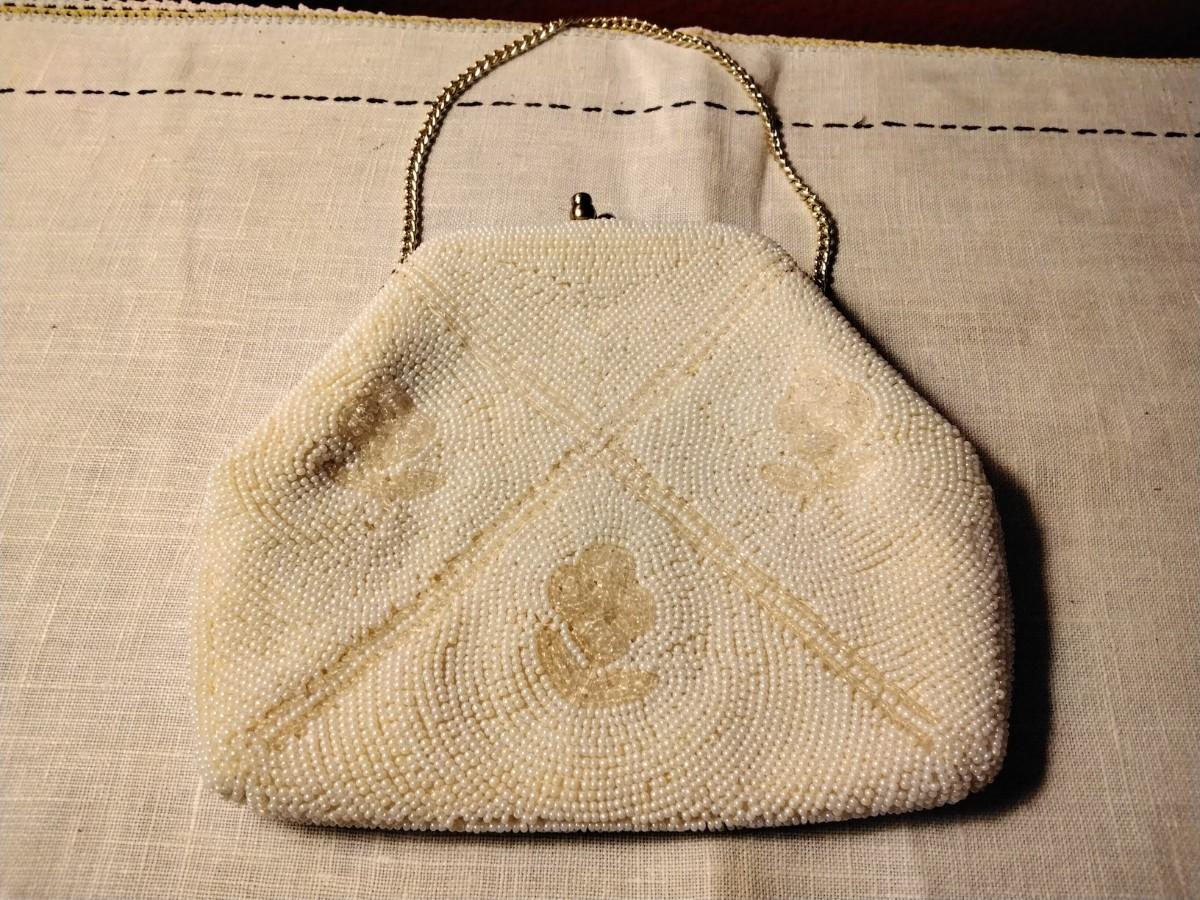 Gorgeous Ivory Beaded Evening Bag With Ivory Lining in Perfect Condition with no stains, tears, or rips. It is immaculately beautiful! Made in Japan with Italian Beads.