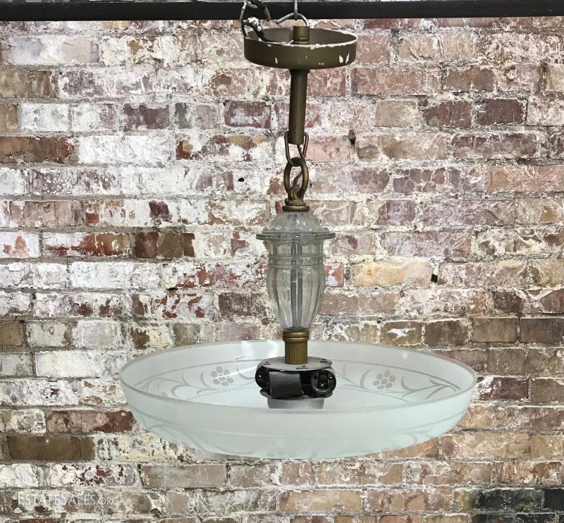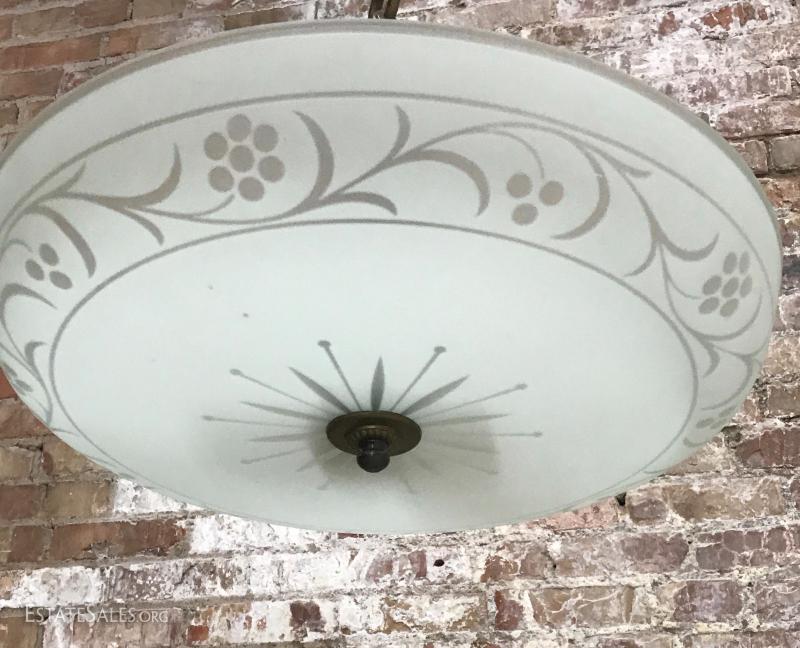 Vintage satin glass light fixture 1940's era, 20" diameter satin shade, 16" long.