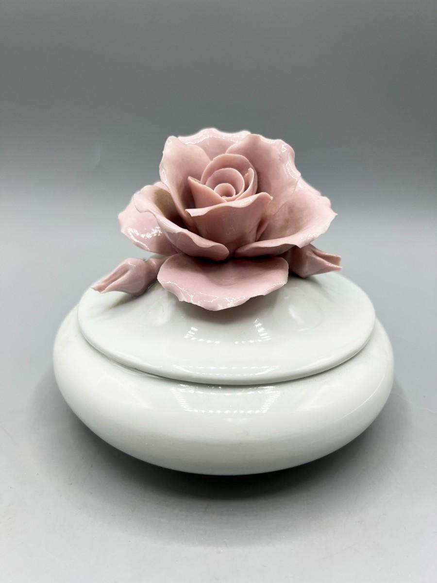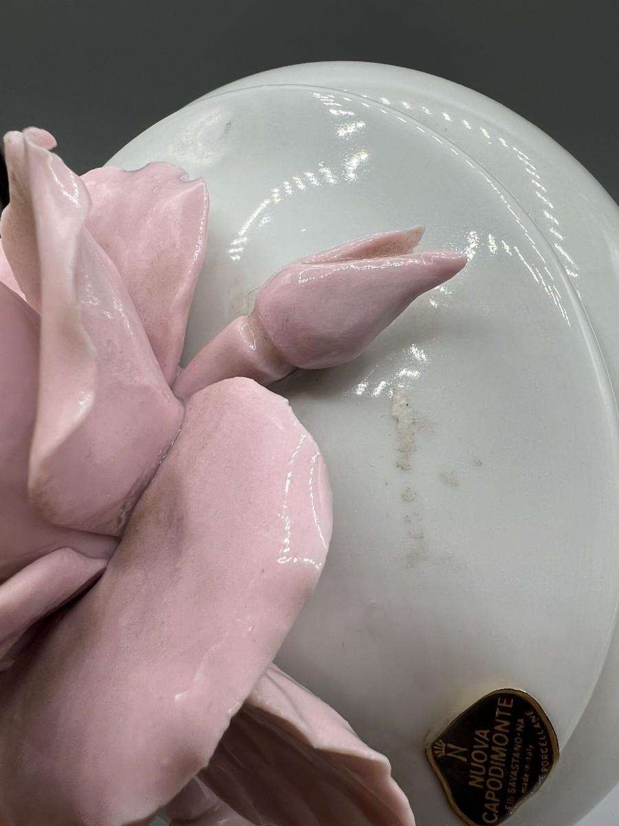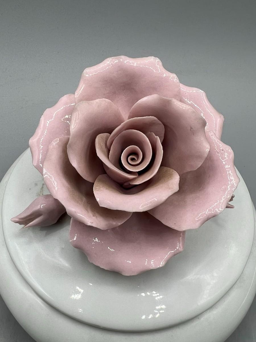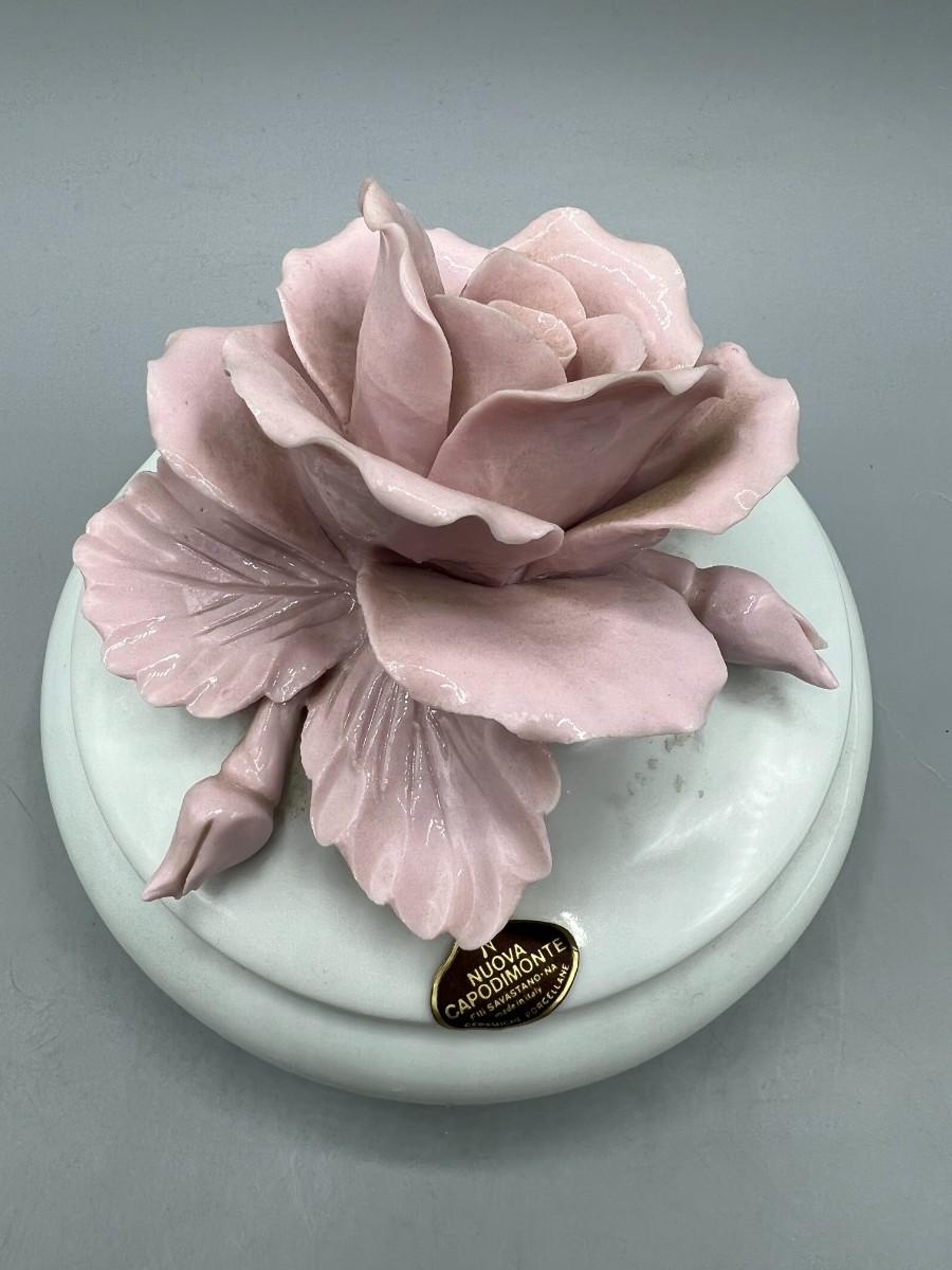 Vintage Savastano Nuova Capodimonte Fine Porcelain Rose Lidded Trinket Dish