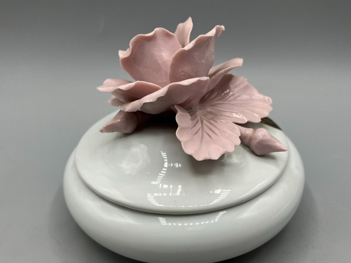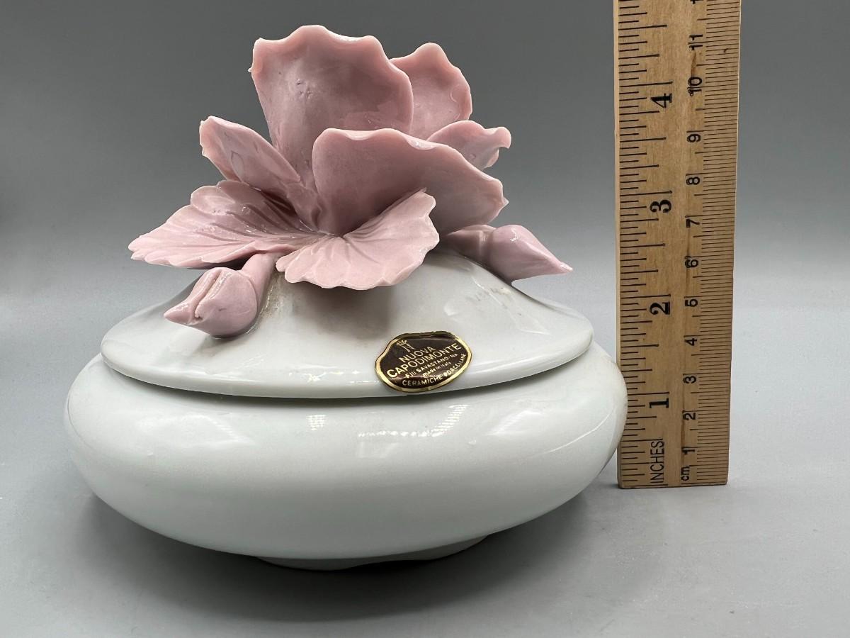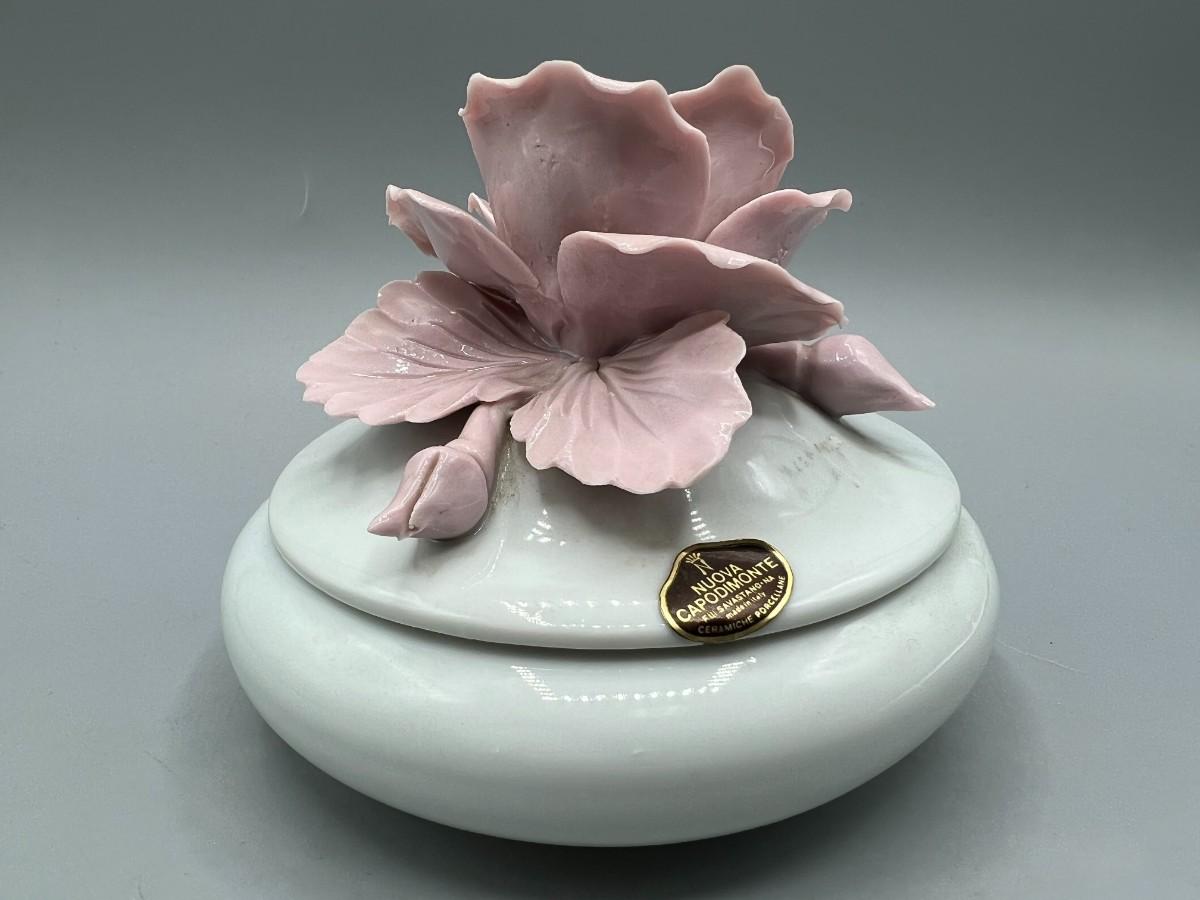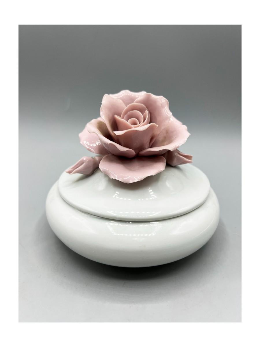 Vintage Savastano Nuova Capodimonte Fine Porcelain Rose Lidded Trinket Dish