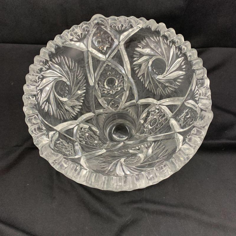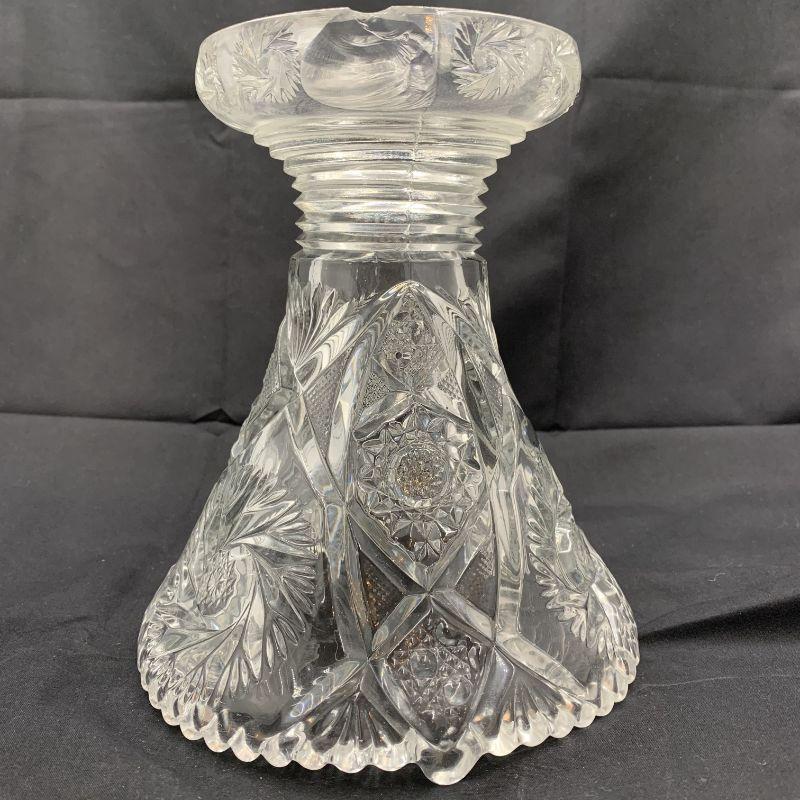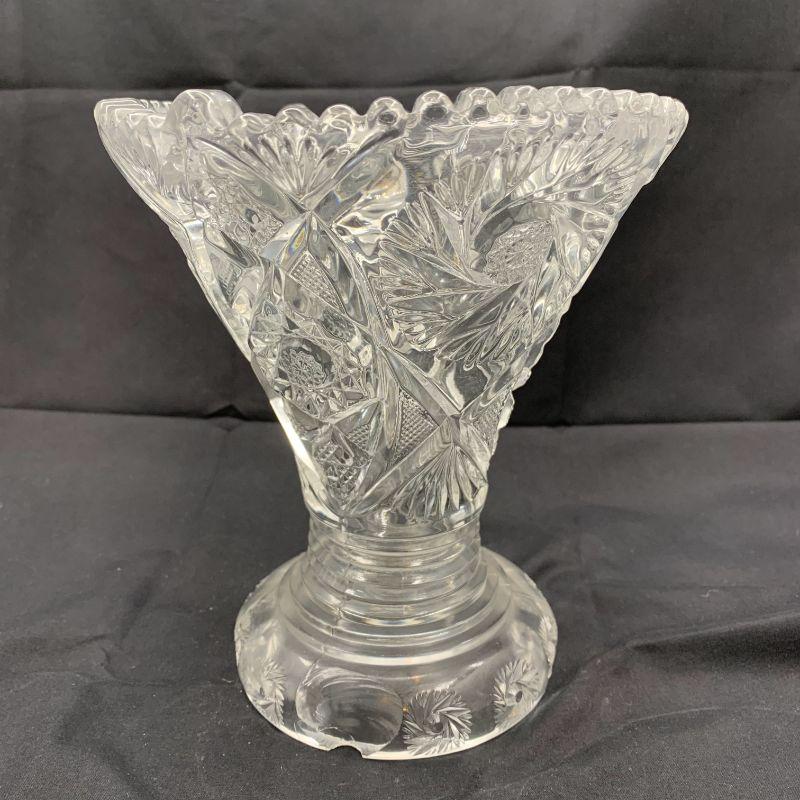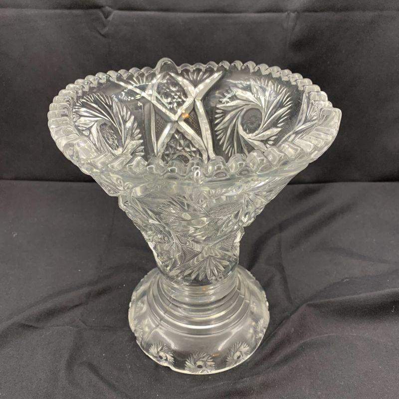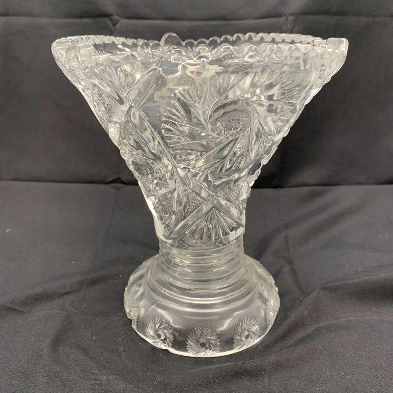 Pedestal Vase, Deep Cut, Sawtooth, swirled hobstar patterns