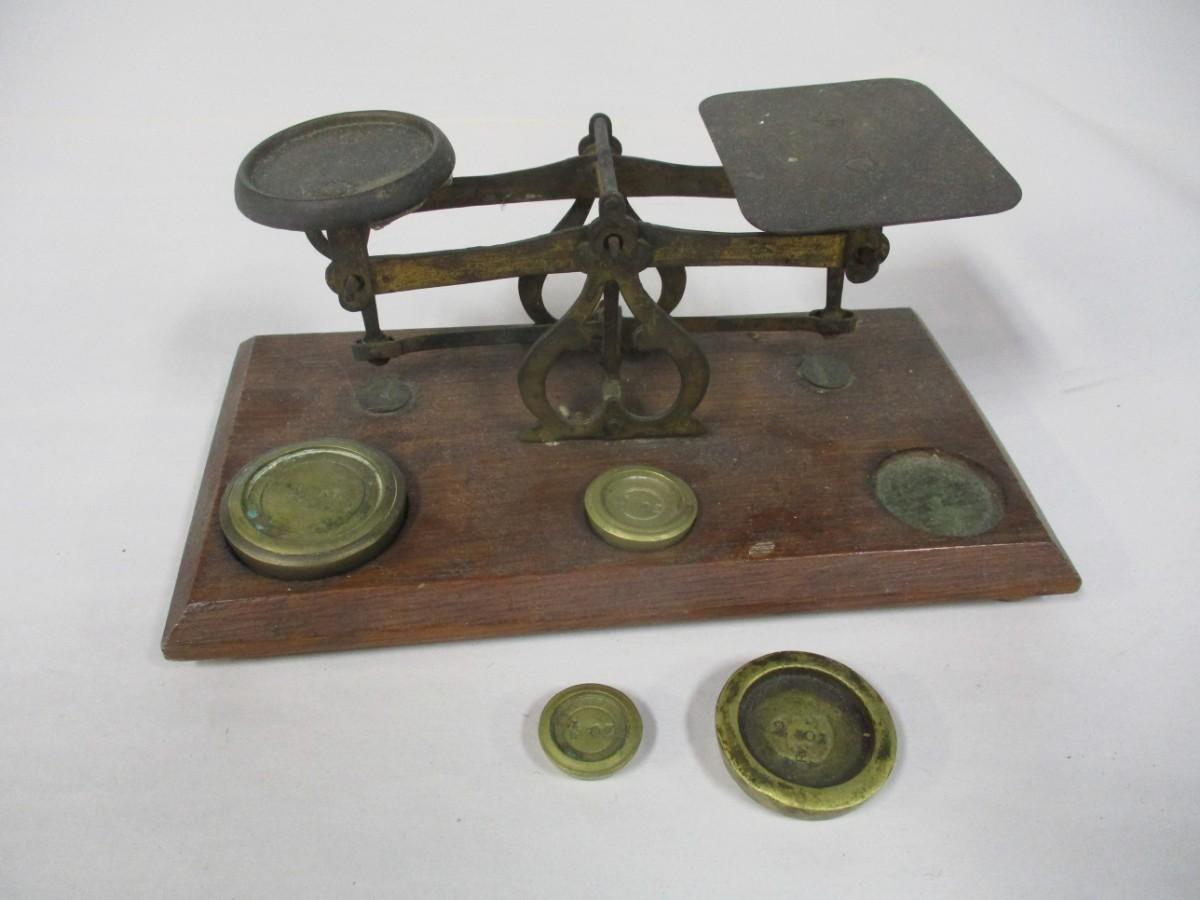 Antique Letter Postal Scale with Brass Weights