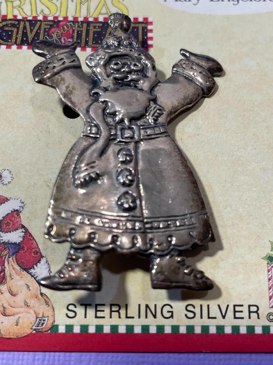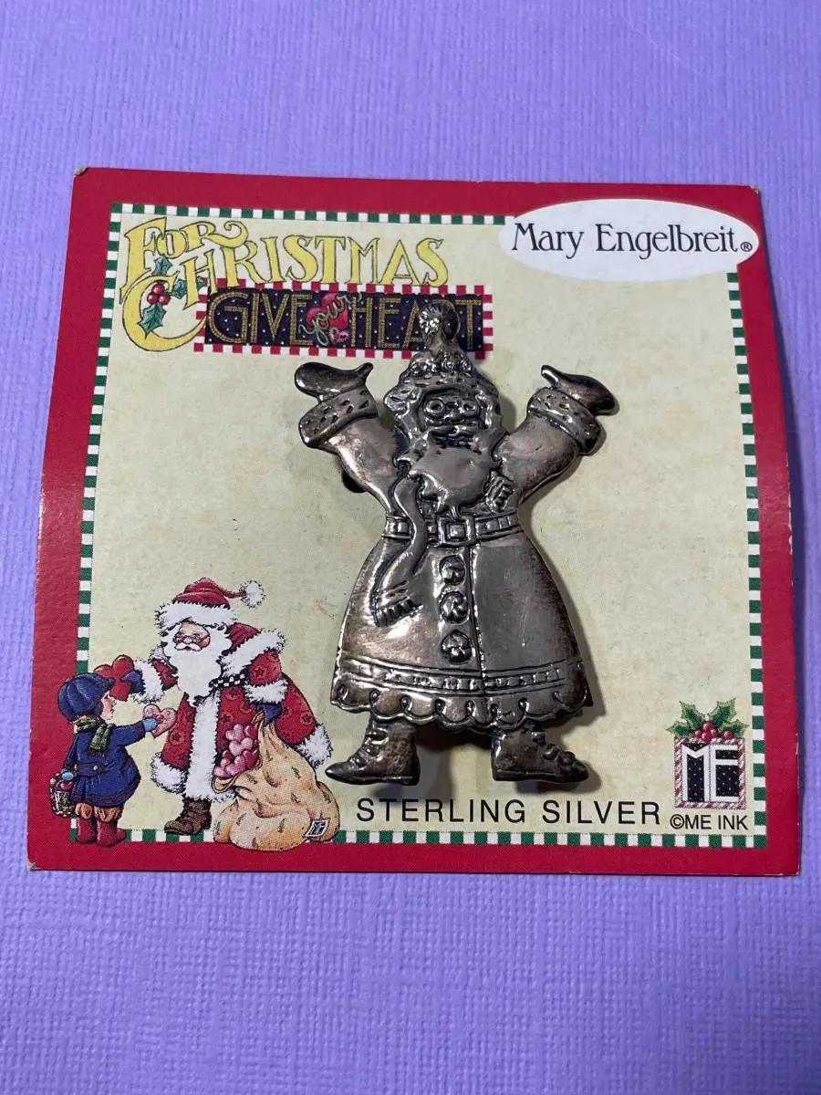 Vintage Scarce MARY ENGELBREIT Designer Sterling Silver SANTA CLAUS Pin in VG Never Used Condition. $5 DOMESTIC SHIPPING.