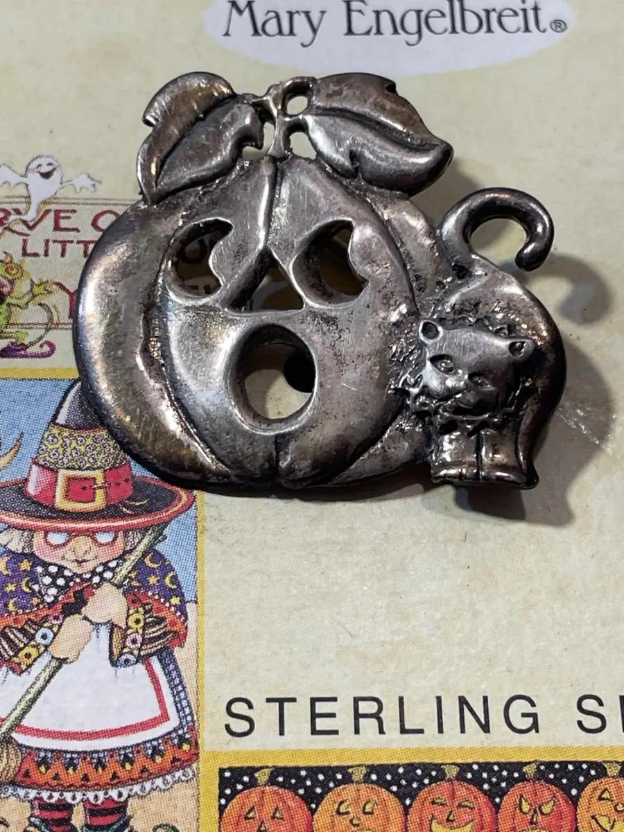 Vintage Scarce MARY ENGELBREIT Designer Sterling Silver Halloween Pumpkin Pin in VG Never Used Condition. $5 DOMESTIC SHIPPING.
