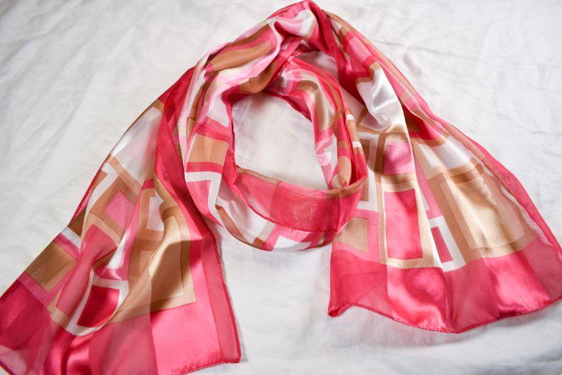 Pretty in pink, oblong fashion scarf **Please read Terms and Conditions before placing a bid. Pick up is Sunday, November 24 from 9am to 3pm or Tuesday, November 26 from 4pm-7pm in Mantua, NJ. All sales are final. All sales are as is, where is. Please review all photos. Any props included in photos are not included in listing. All measurements are approximate.