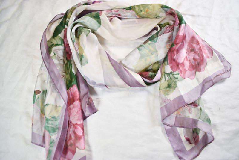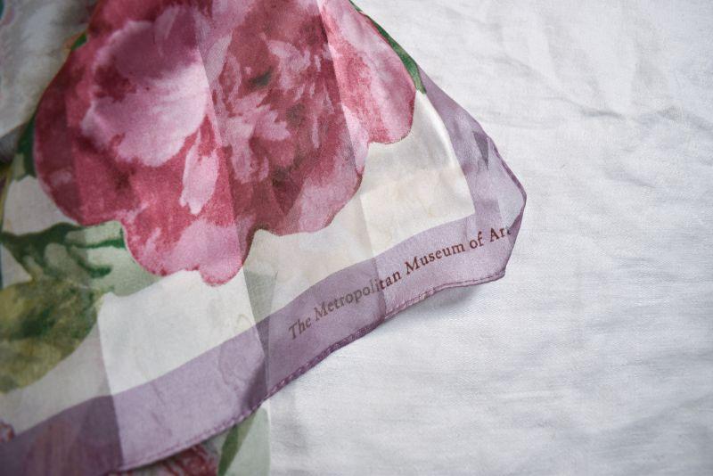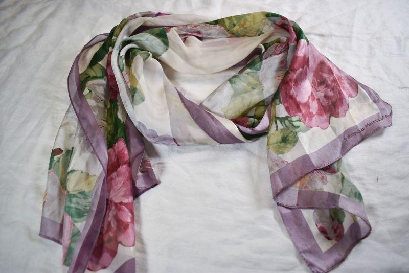 Silk scarf made exclusively for the Metropolitan Museum of Art. **Please read Terms and Conditions before placing a bid. Pick up is Sunday, November 24 from 9am to 3pm or Tuesday, November 26 from 4pm-7pm in Mantua, NJ. All sales are final. All sales are as is, where is. Please review all photos. Any props included in photos are not included in listing. All measurements are approximate.