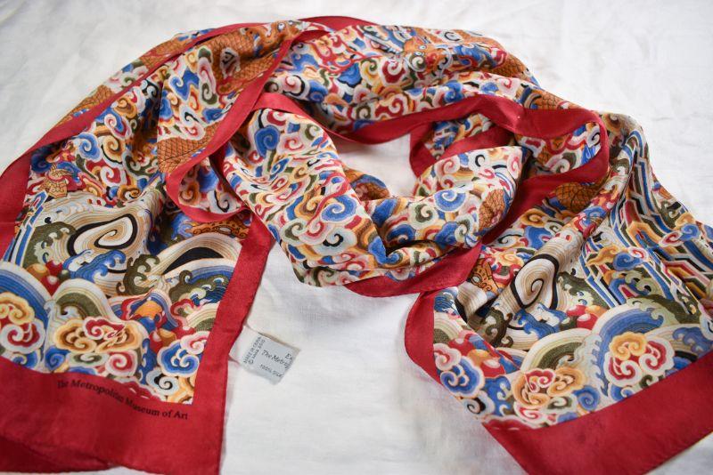 Asian design silk scarf from the Metropolitan Museum of Art. **Please read Terms and Conditions before placing a bid. Pick up is Sunday, November 24 from 9am to 3pm or Tuesday, November 26 from 4pm-7pm in Mantua, NJ. All sales are final. All sales are as is, where is. Please review all photos. Any props included in photos are not included in listing. All measurements are approximate.