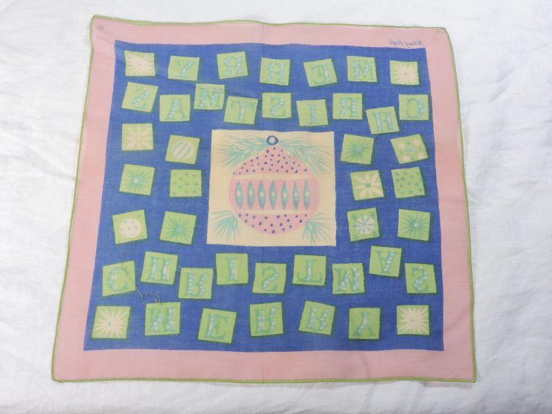 Another Christmas handkerchief for your collection. **Please read Terms and Conditions before placing a bid. Pick up is Sunday, November 24 from 9am to 3pm or Tuesday, November 26 from 4pm-7pm in Mantua, NJ. All sales are final. All sales are as is, where is. Please review all photos. Any props included in photos are not included in listing. All measurements are approximate.