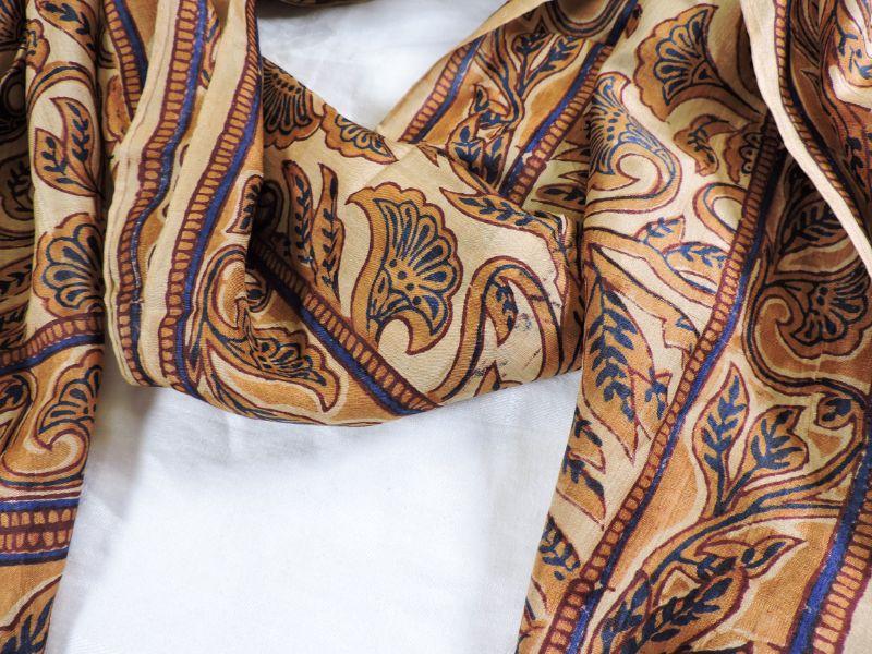 Beautiful silk, hand blocked print scarf Nice for the fall weather. **Please read Terms and Conditions before placing a bid. Pick up is Sunday, November 24 from 9am to 3pm or Tuesday, November 26 from 4pm-7pm in Mantua, NJ. All sales are final. All sales are as is, where is. Please review all photos. Any props included in photos are not included in listing. All measurements are approximate.