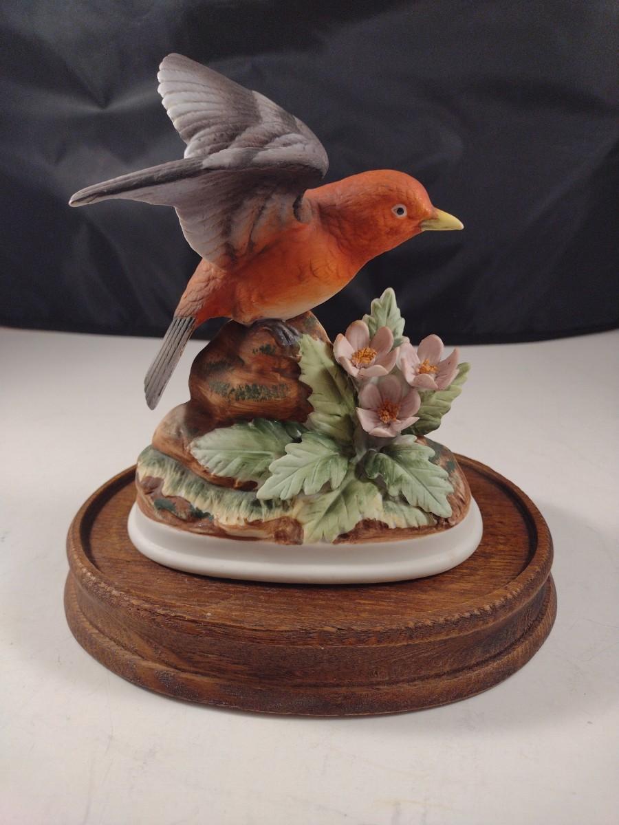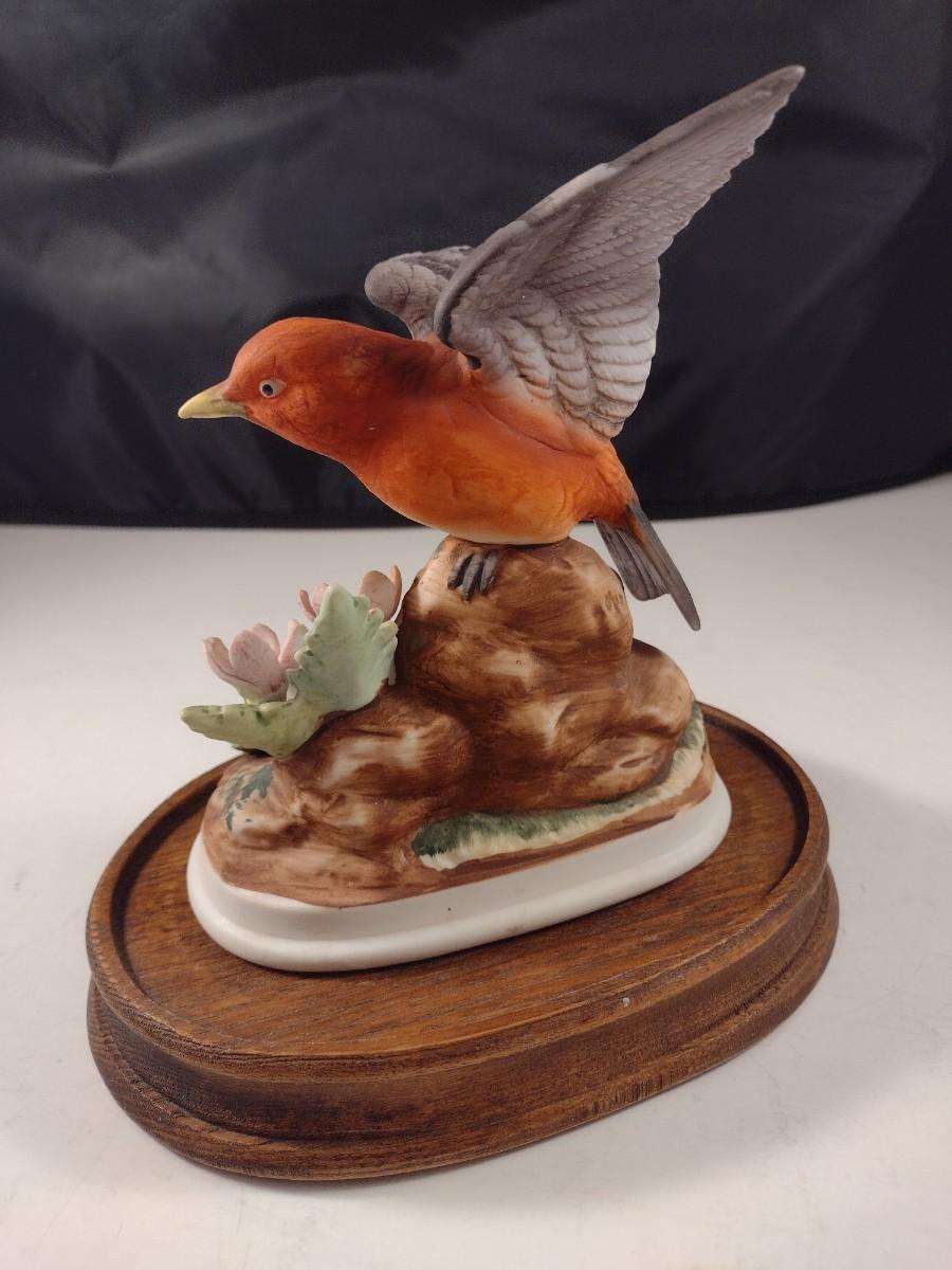 Vintage Scarlett Tanager Ceramic Bird Statuette Andrea by Sadek