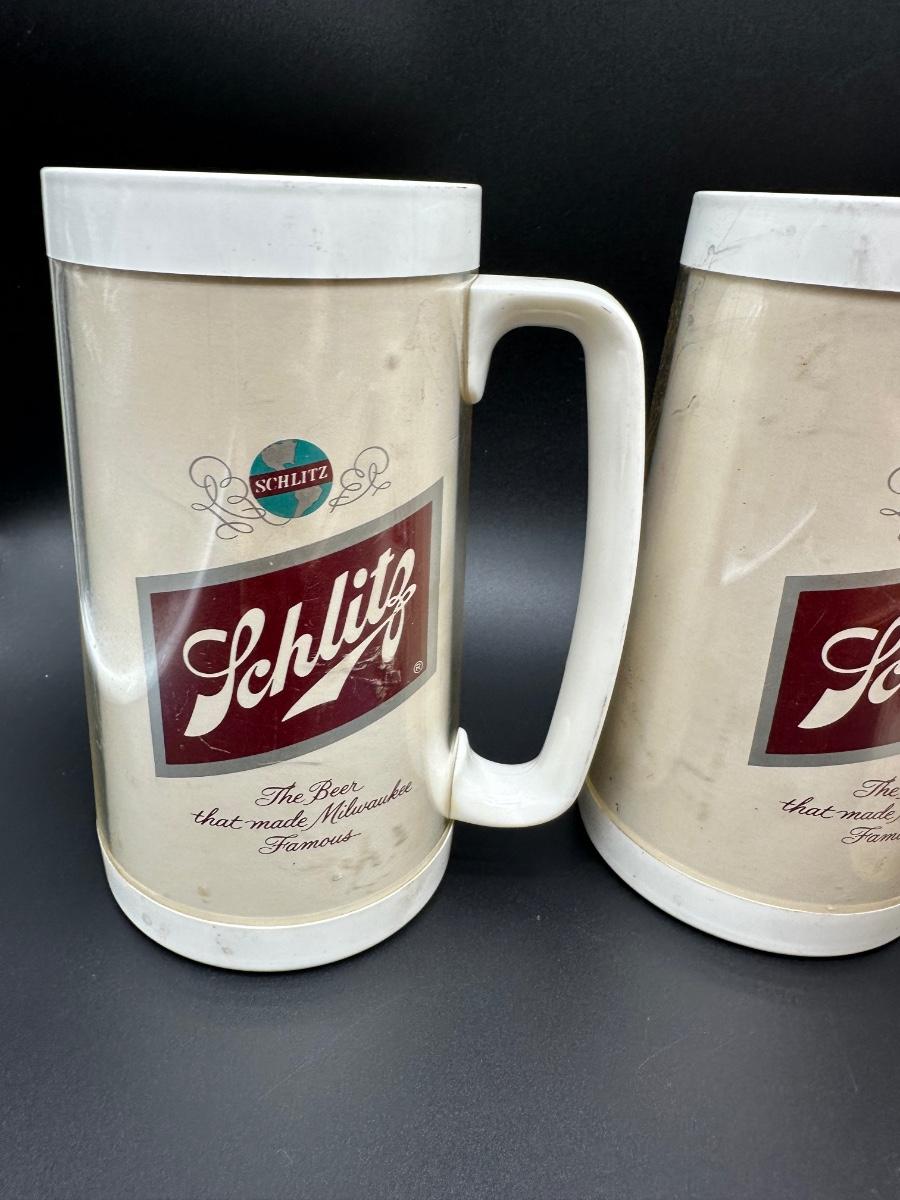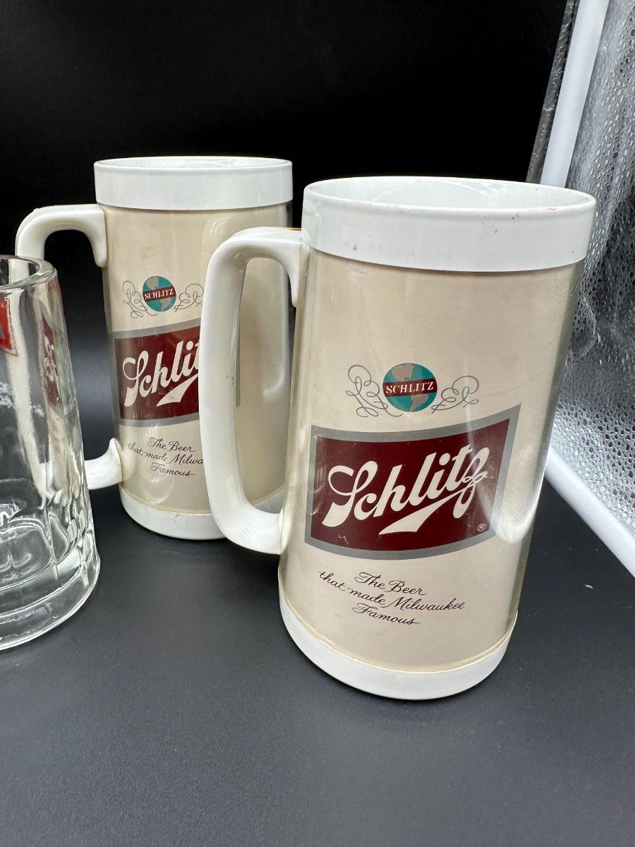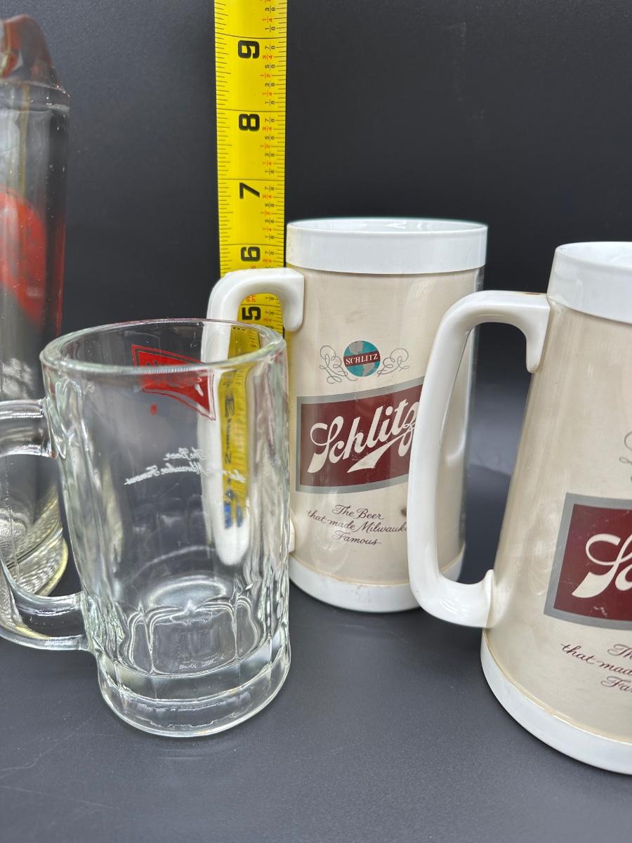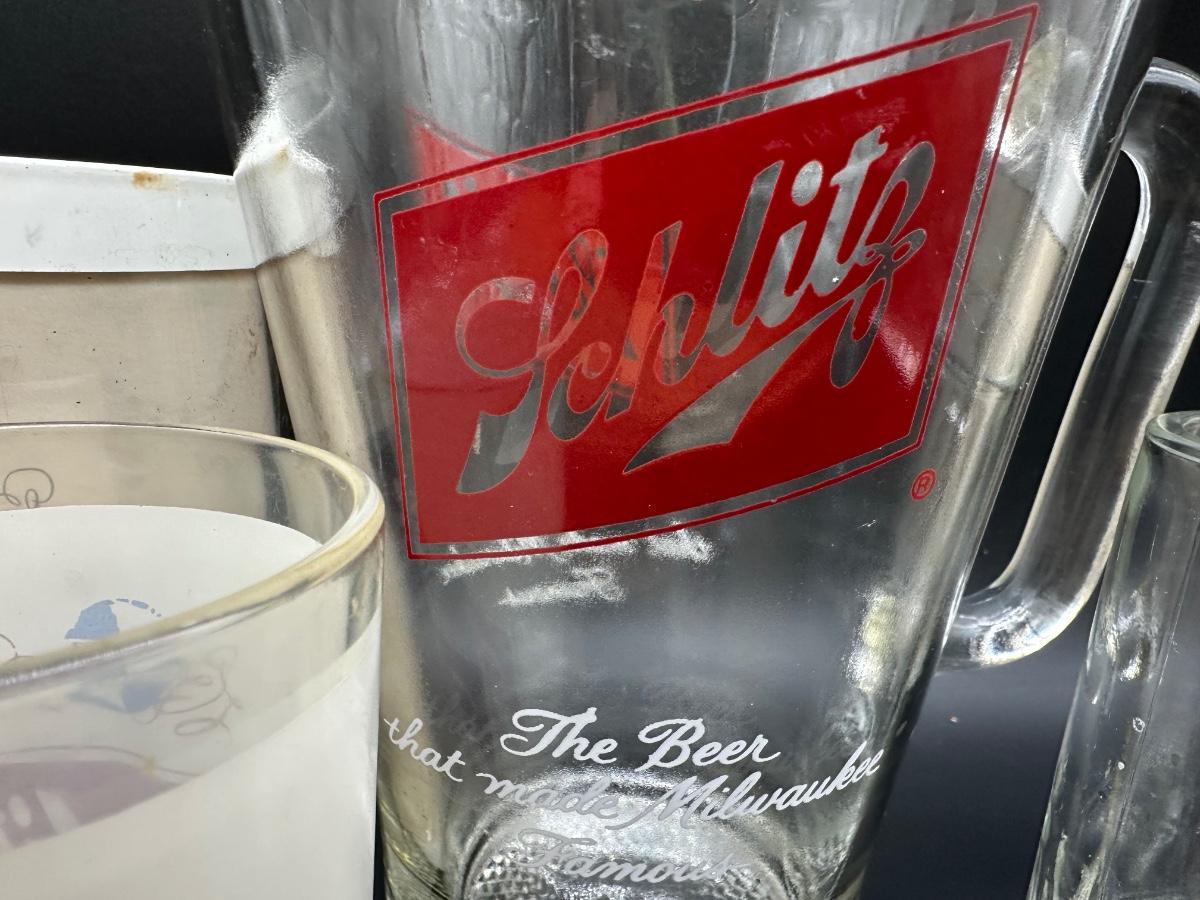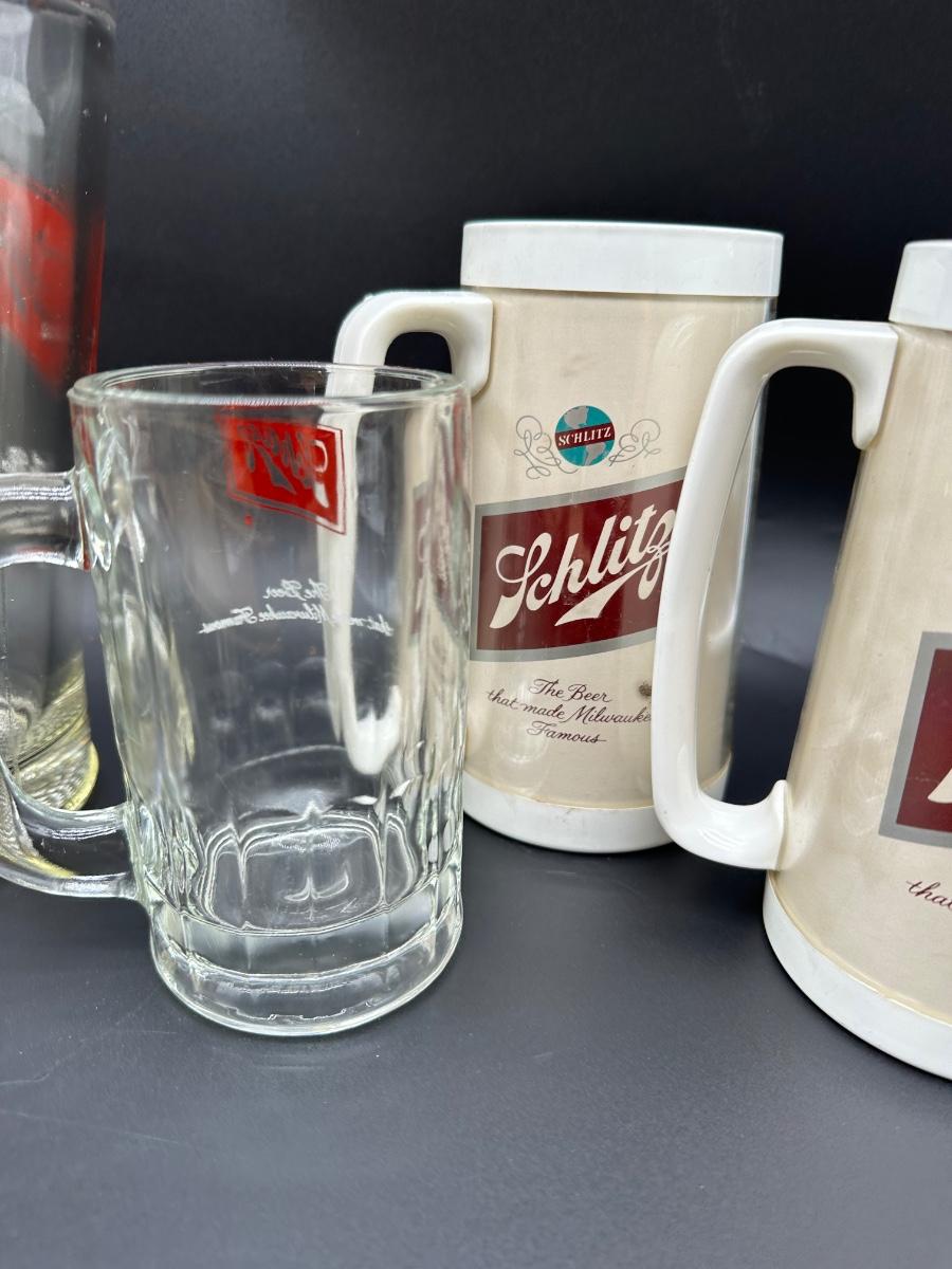 Vintage Schlitz Beer Barware Lot – Pitcher, Glass Mug, Tumblers & Plastic Steins