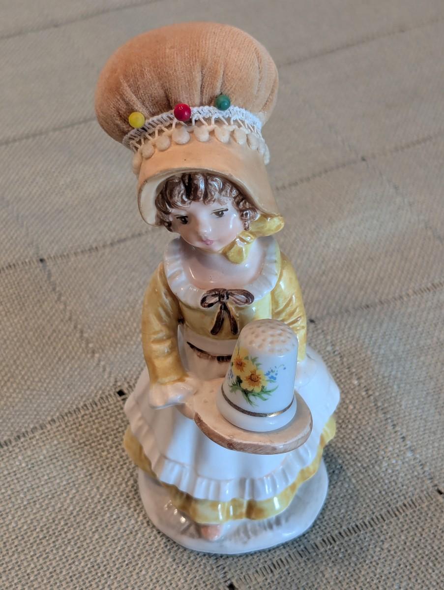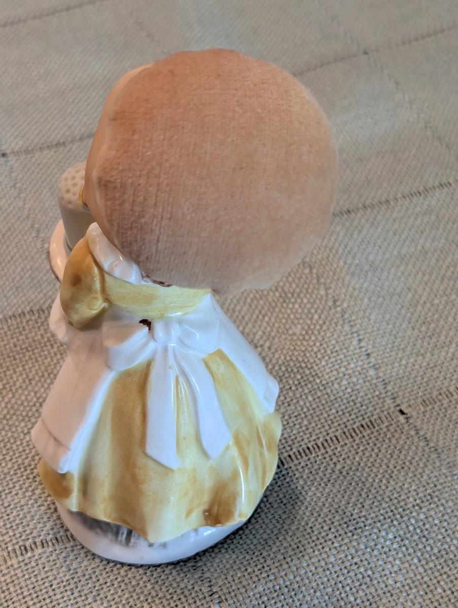 Vintage Schmid Girl Ceramic Pin Cushion Hat & Thimble Holder