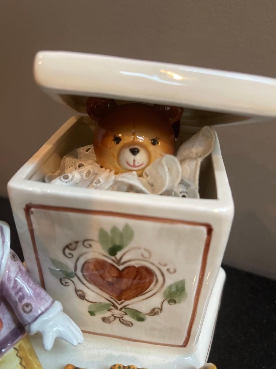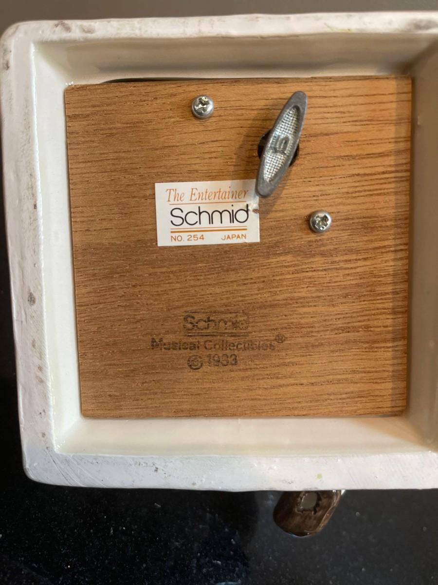 vintage Schmid music box “the entertainer“ circa 1983. Excellent condition. 6 1/2 inches high by 4 1/4 inches wide. Signed.