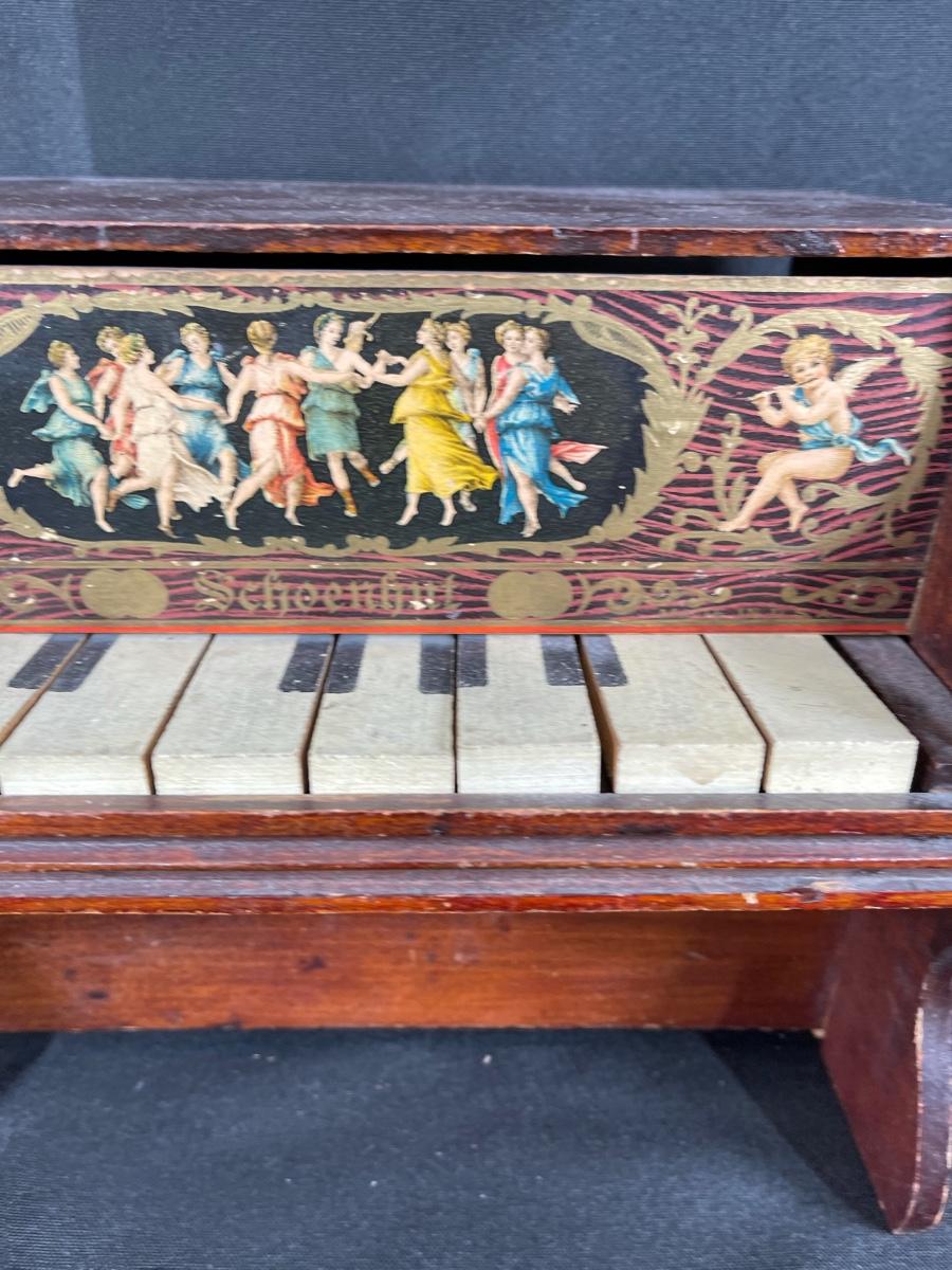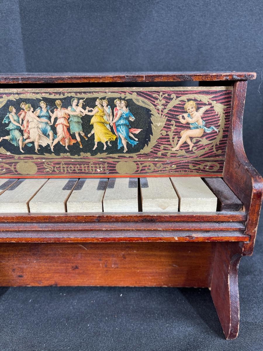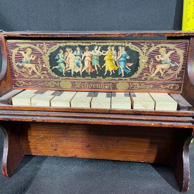 Vintage Schoenhut child size toy piano. Has some wear from age and use. Displays nicely